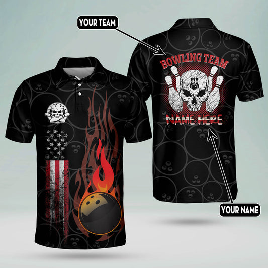 Custom Flame Bowling Polo Shirts For Team BO0026