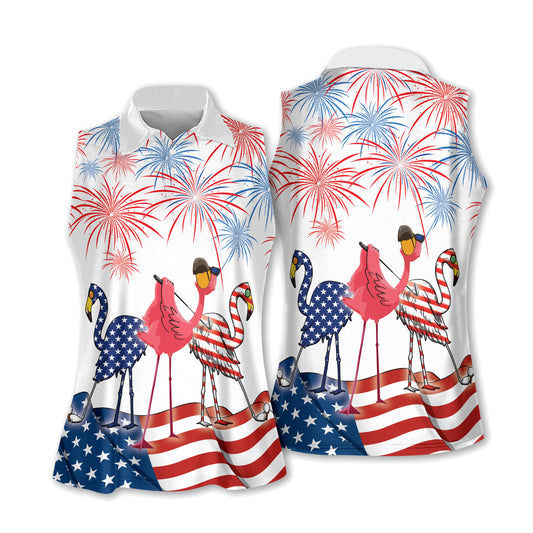 4th of july pattern flamingo women golf apparel, golf polo shirt for women GY0248