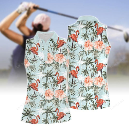 Plan for the day flamingo tropical golf women sleeveless polo shirt GY0058