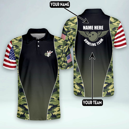 Custom Camo Bowling Polo Shirt For Men, Custom Camo Bowling Team Shirts BM0146
