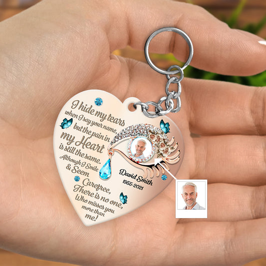 Personalized Memorial Keychain, Custom Photo I Hide My Tears Acrylic Keychain for lost Dad, lost Mom Keychain KO0157