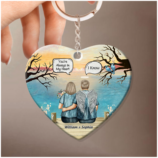 Always On My Mind, Forever In My Heart Old Couple Personalized Memorial Wooden Keychain KO0019