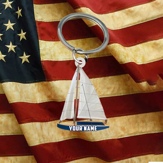 Personalized Sailboat keychain, Custom Name Flat Acrylic Keychain for Sailor KO0213