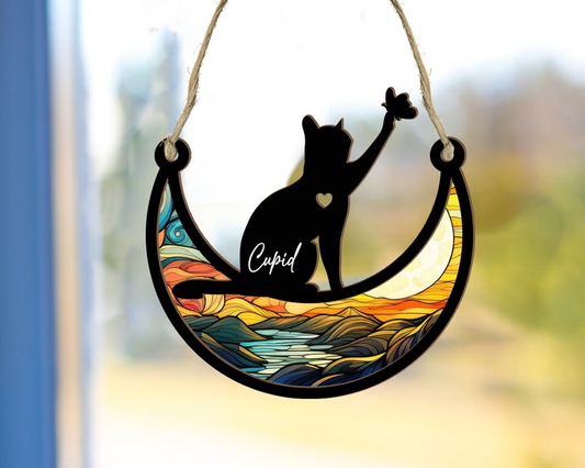 Cat Memorial Suncatcher Ornament, Loss of Pet Sympathy Gift, Handmade Custom Name Cat Decor, Pet Memorial Gift OA0022