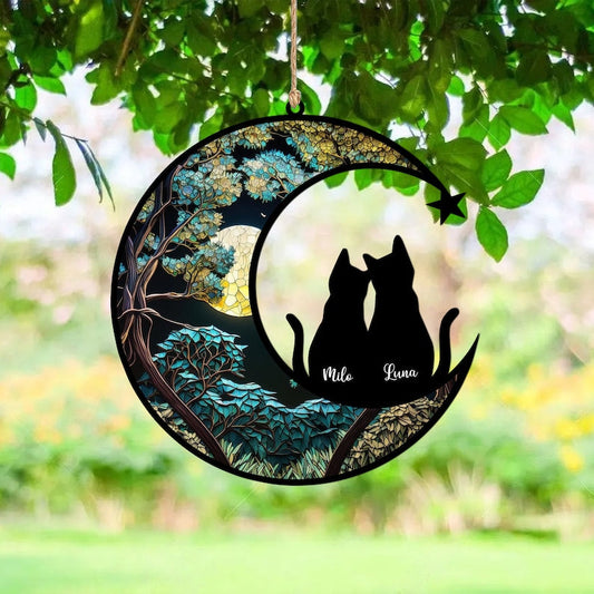 Pet Memorial Suncatcher, Personalized Pet On Moon Suncatcher, Loss of Pet Sympathy Gift OA0152