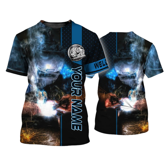 Personalized Welder Blue Graphic Design 3D Printed Shirts, Welder Tshirt, Gift For Welder Man TO2556