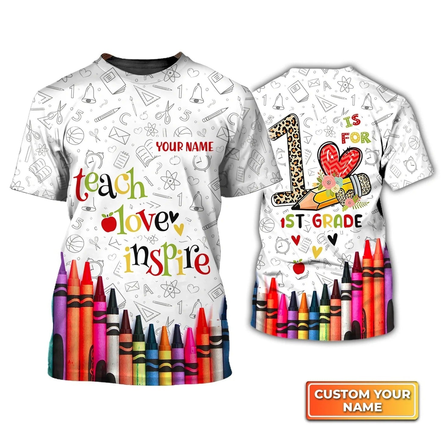 1ST Grade Teacher Shirt , Teach Love Inspire Personalized Name 3D Tshirt TO2300