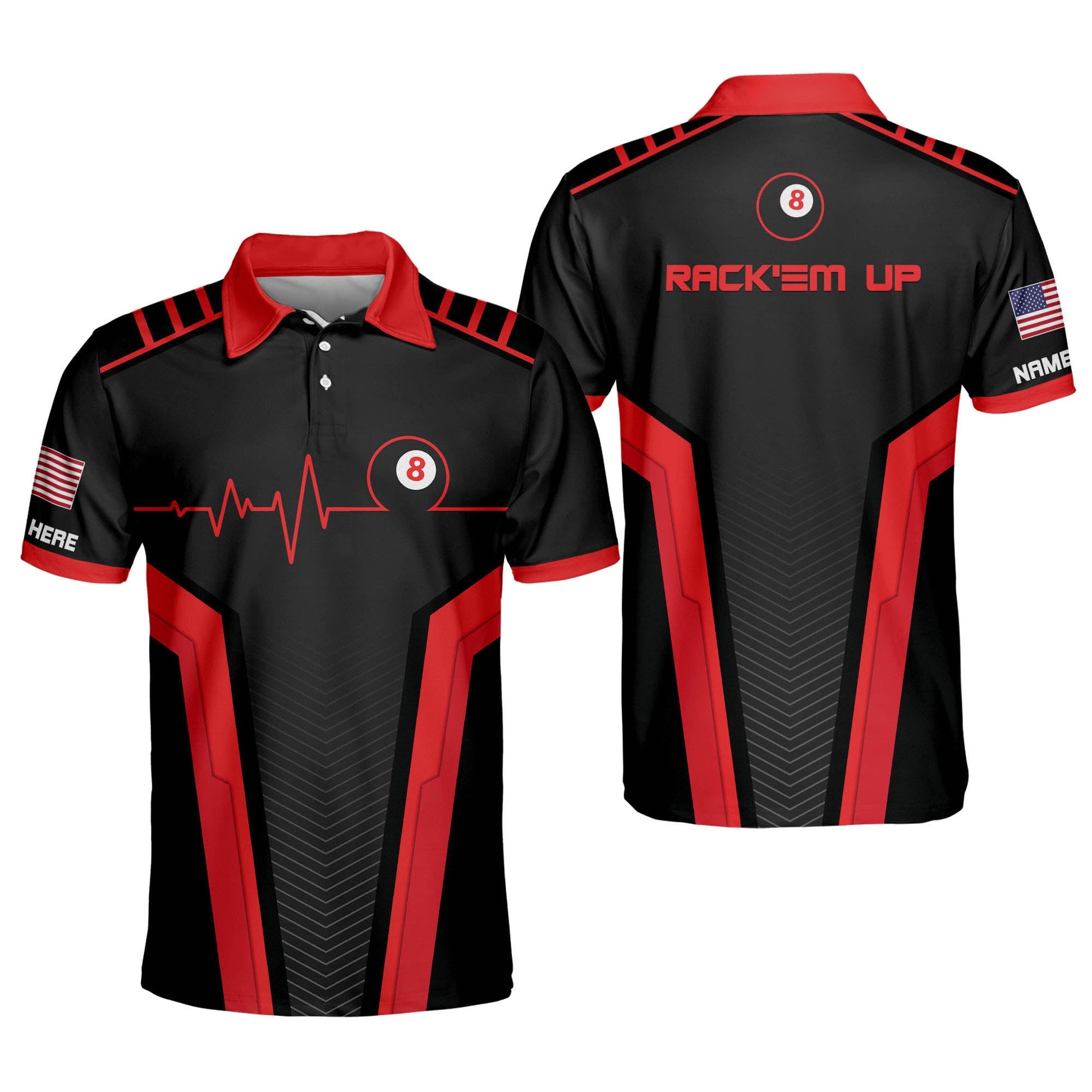 3D All Over Print Funny Heartbeat Billiard Rack'Em Up Eight Ball Pool Polo Shirt, Gift for Men Women SO1381