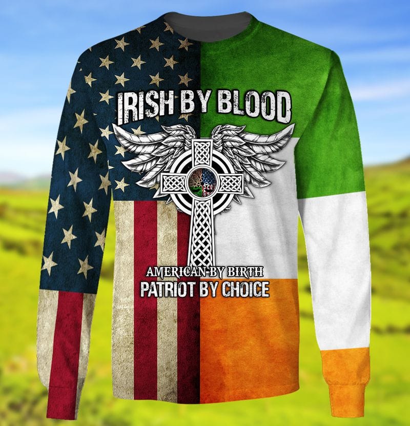 3D All Over Print Irish By Blood St Patrick's Day Shirt, American By Birth Patriot By Choice 3D Shirt PO0284