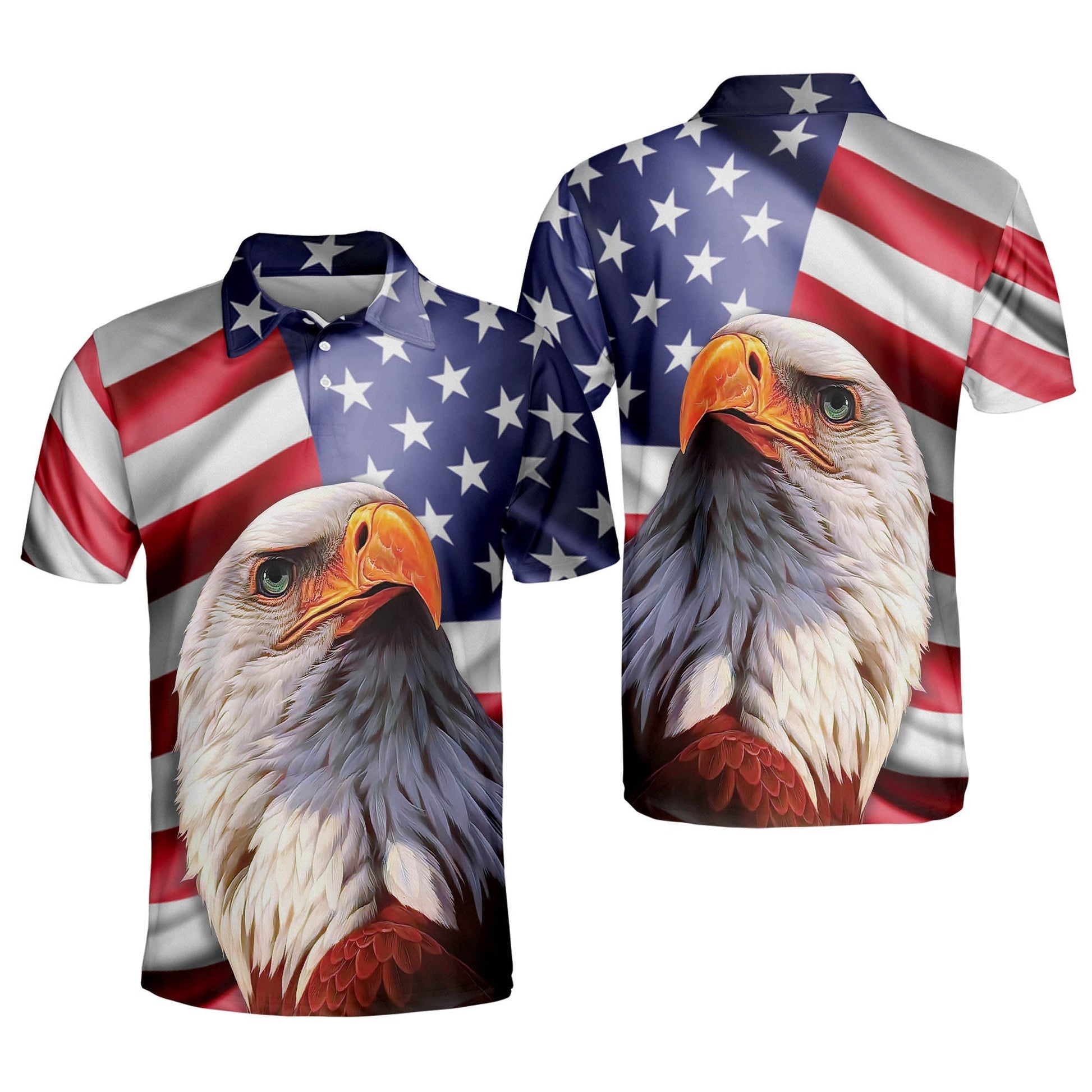 3D All Over Print Patriotic American Design With Eagle Polo Shirt, Idea Shirt for Men in Independence Day SO1362