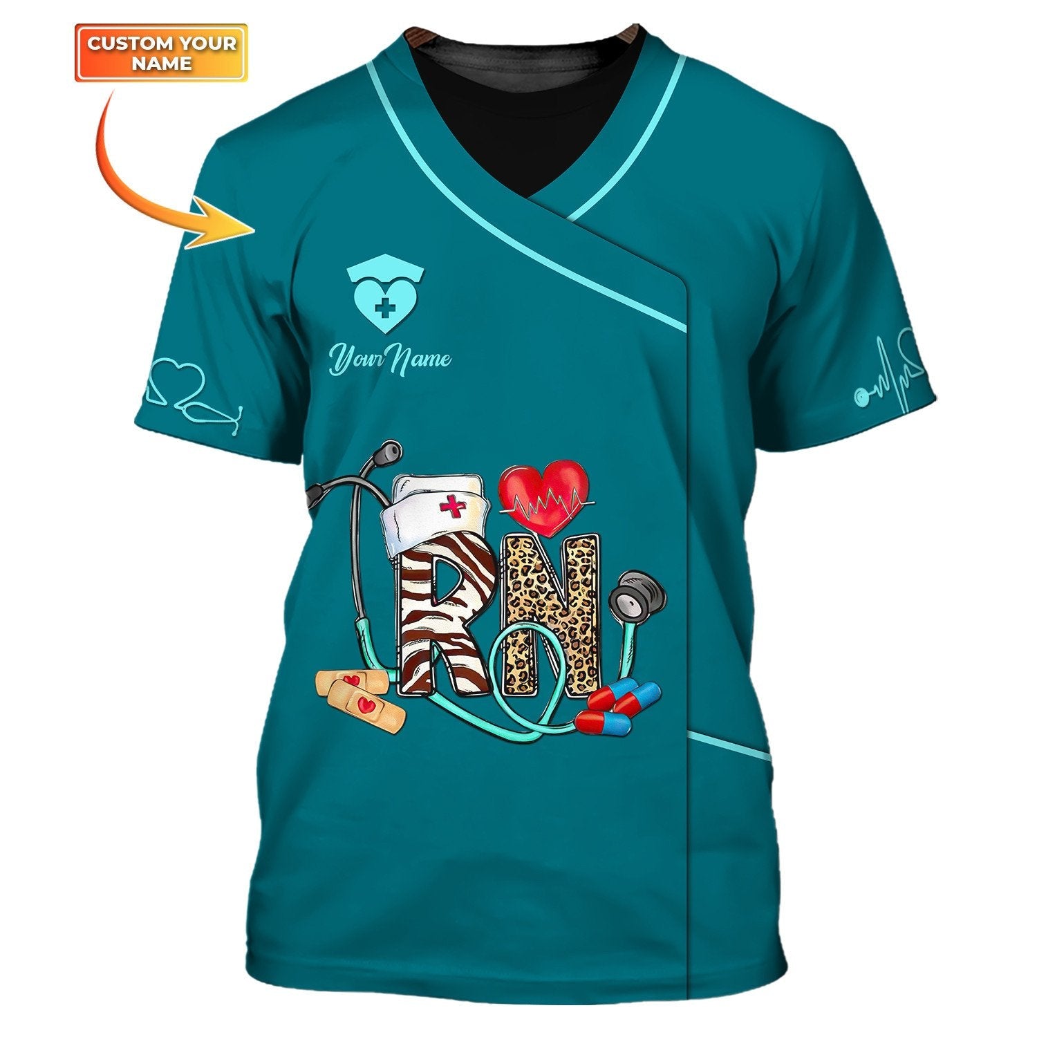 3D All Over Print RN Uniform Medical Scrubs Clothing Custom RN Tshirt TO3327