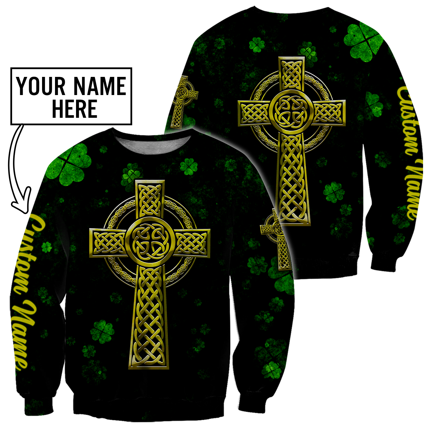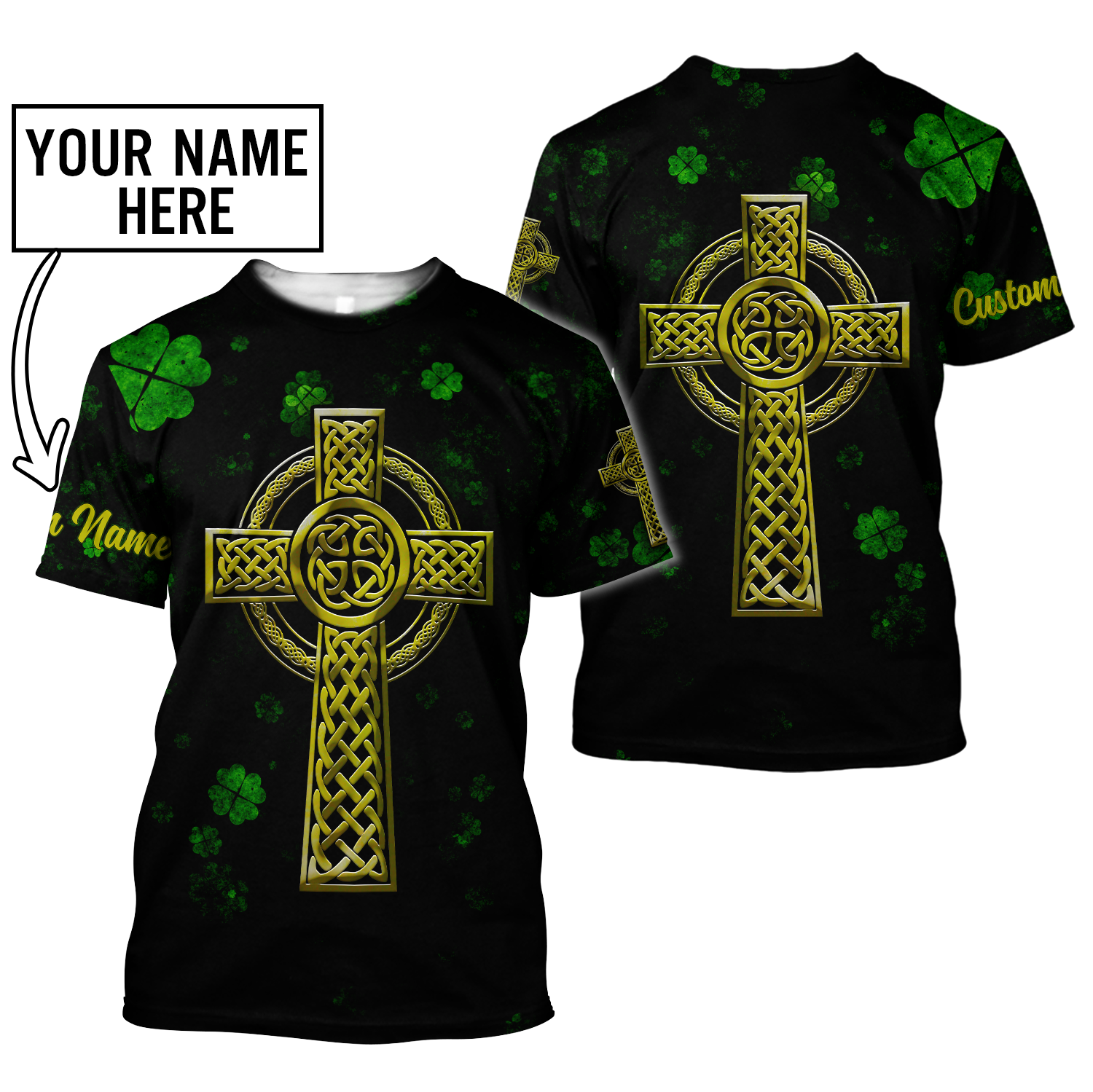 Customized 3D All Over Print Saint Patrick's Day Shirt, St. Patrick's Day Shirt, Shamrock Celtic Cross Shirt PO0309