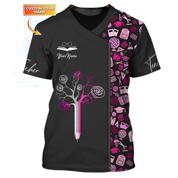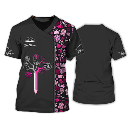 3D All Over Print Teacher Tshirt Teacher Pattern Shirt Black Pink Pencil Tree Tee Shirt TO3345