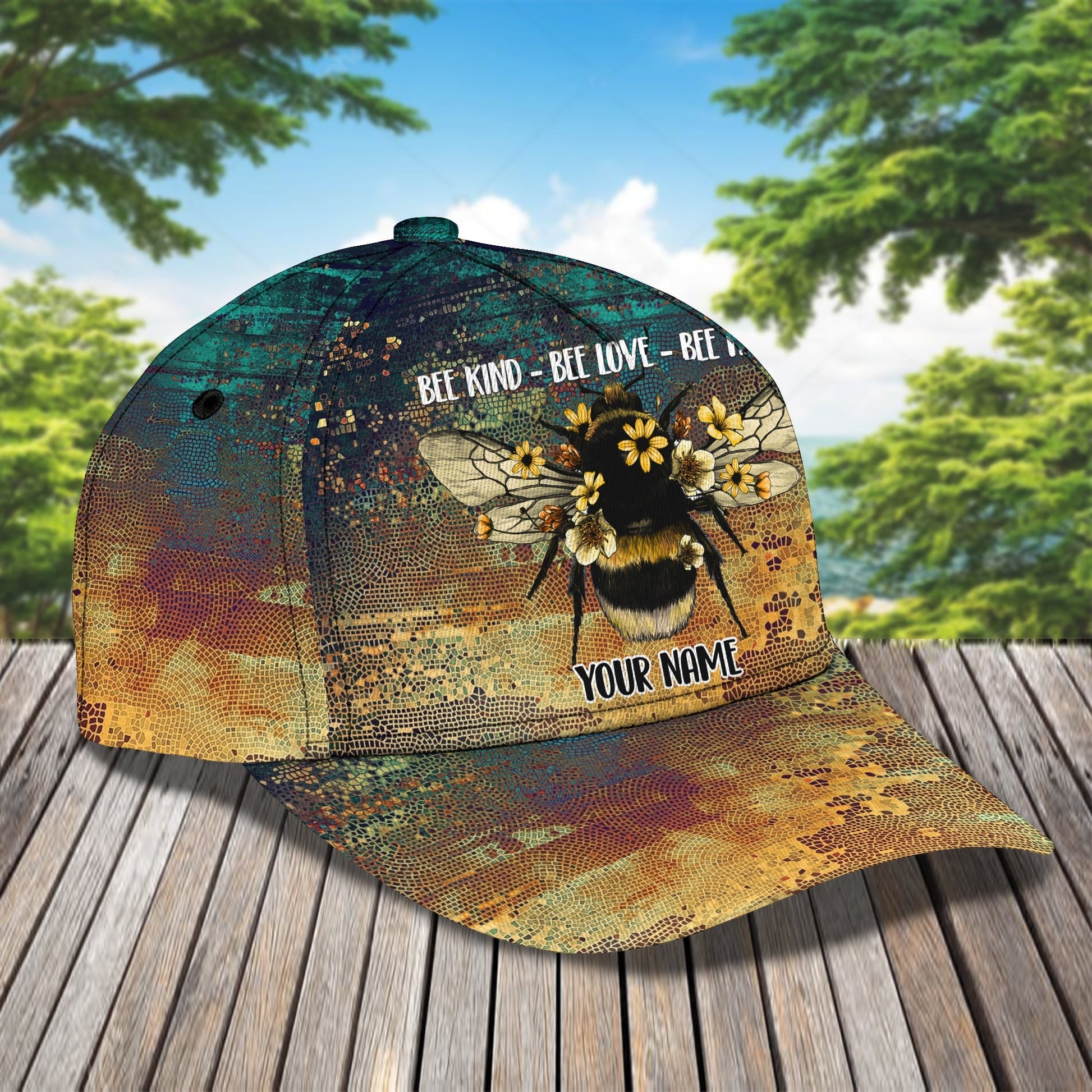 3D Classic Cap Bee Kind Bee Love Bee Happy Personalized Name Cap CA1368