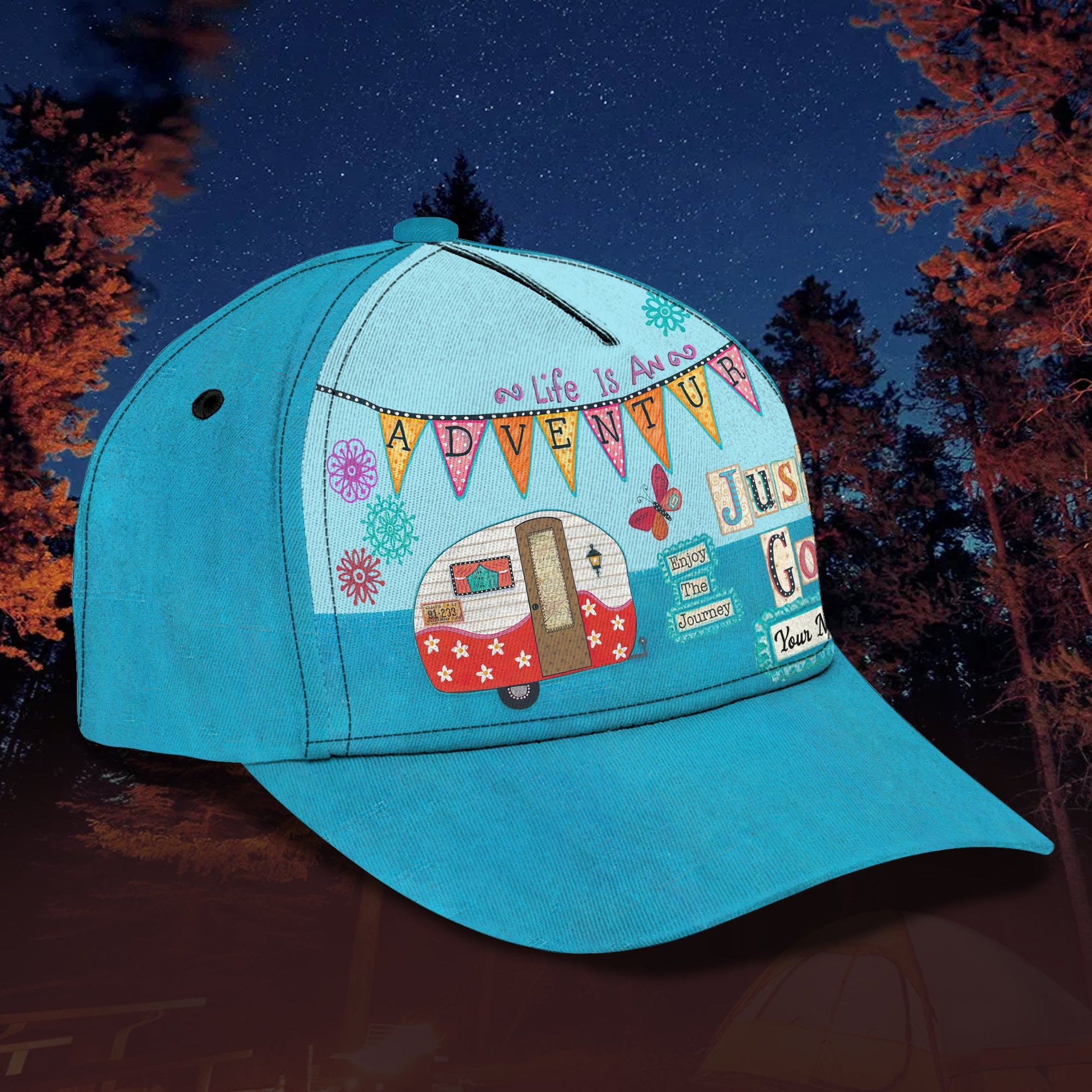 3D Classic Cap Just Go Camping Personalized Name Cap Lasfour CA1165