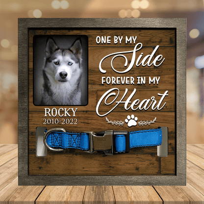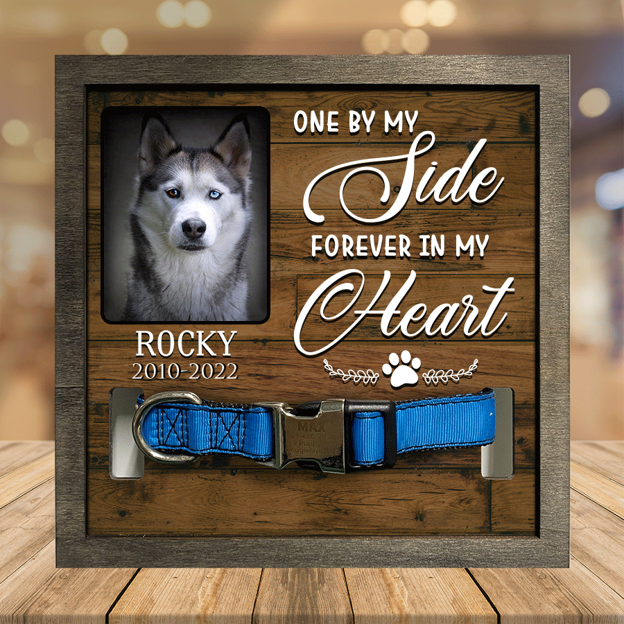 - Pet collar frames show the special moments in life with dogs and cats memorial. Display your best friend's collar together with your favorite photo in memory of loved. Perfect pet collar frame is the unique memory picture frames for your lovely pet. This is also a perfect sympathy gift to send to a friend or family who recently loss of dog or cat.