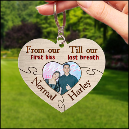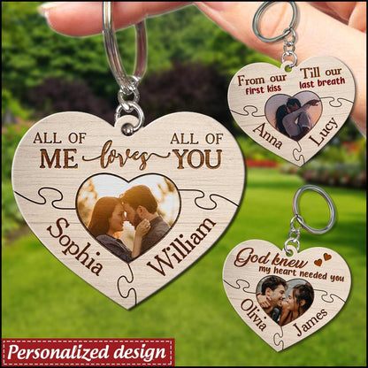 All Of Me Loves All Of You Custom Wooden Keychain, Custom Photo Couple Keychain KO0082