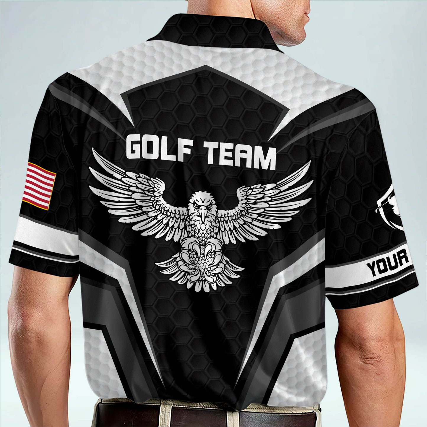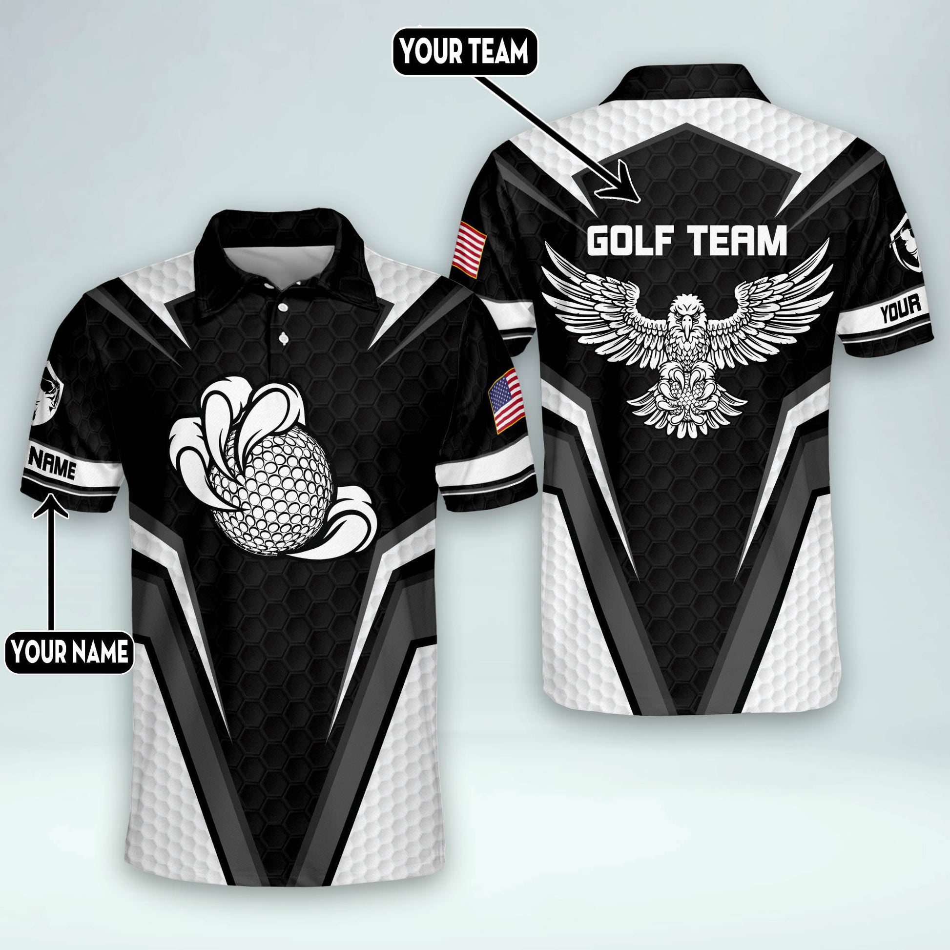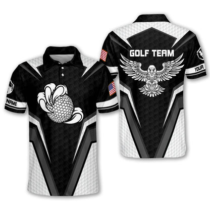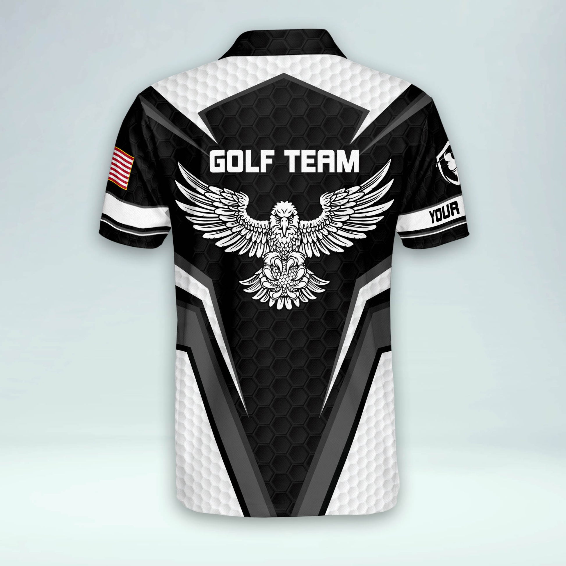 Black And White Custom Eagle Golf Polo Shirt For Men, Custom Team Golf Shirts GM0389