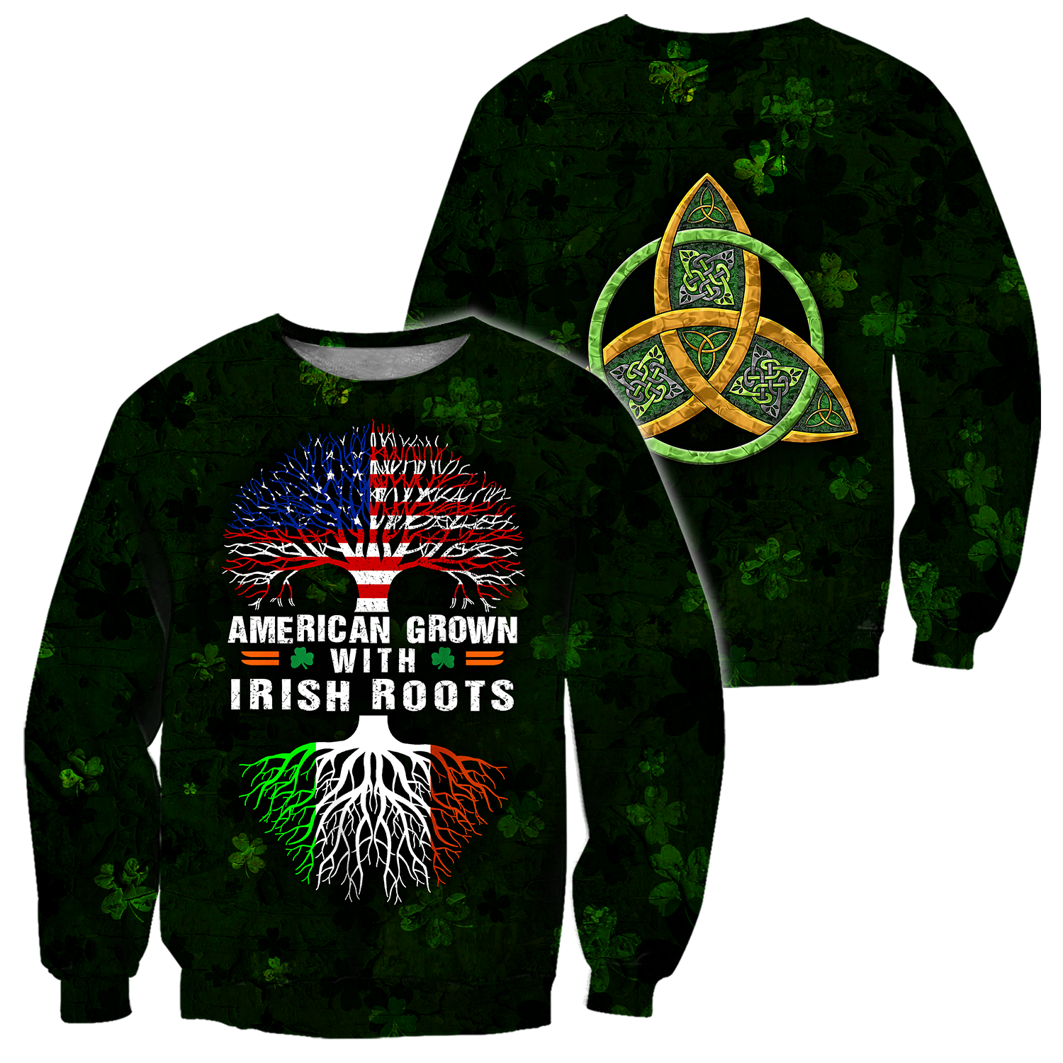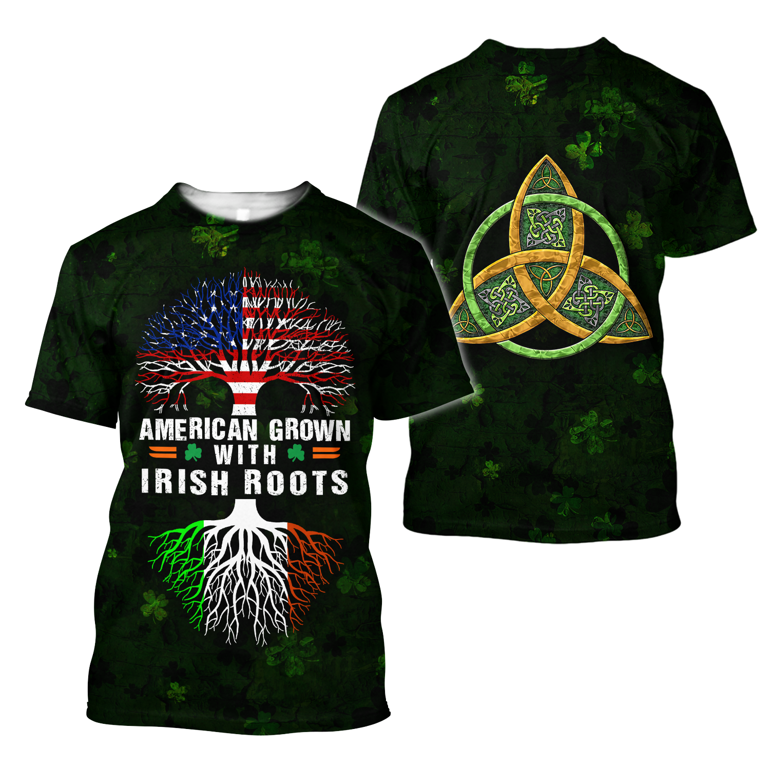 American Grown With Irish Roots Tree of Life 3D Shirt, St Patrick's Day Shirt, Shamrock Shirt, Lucky Shirt PO0287