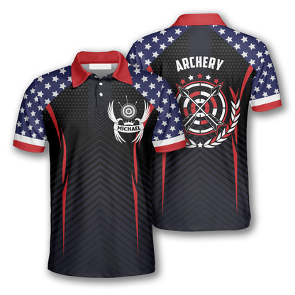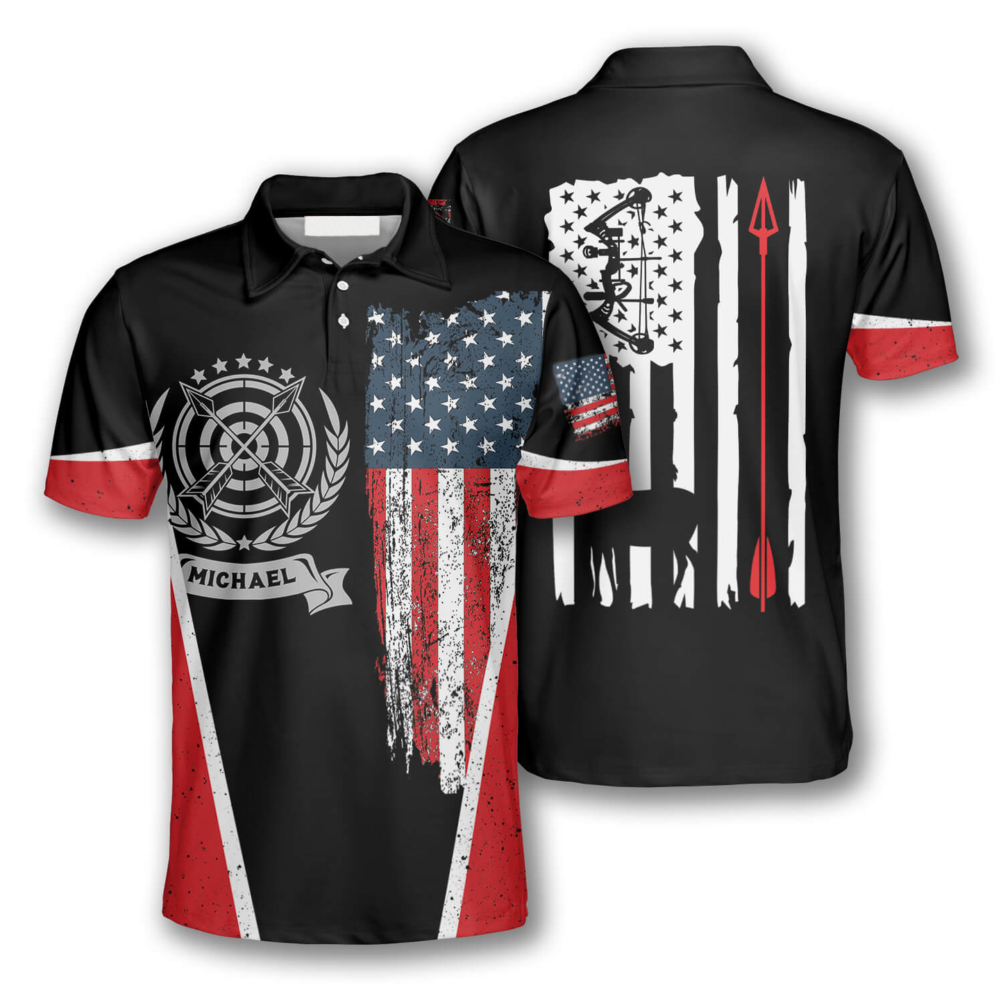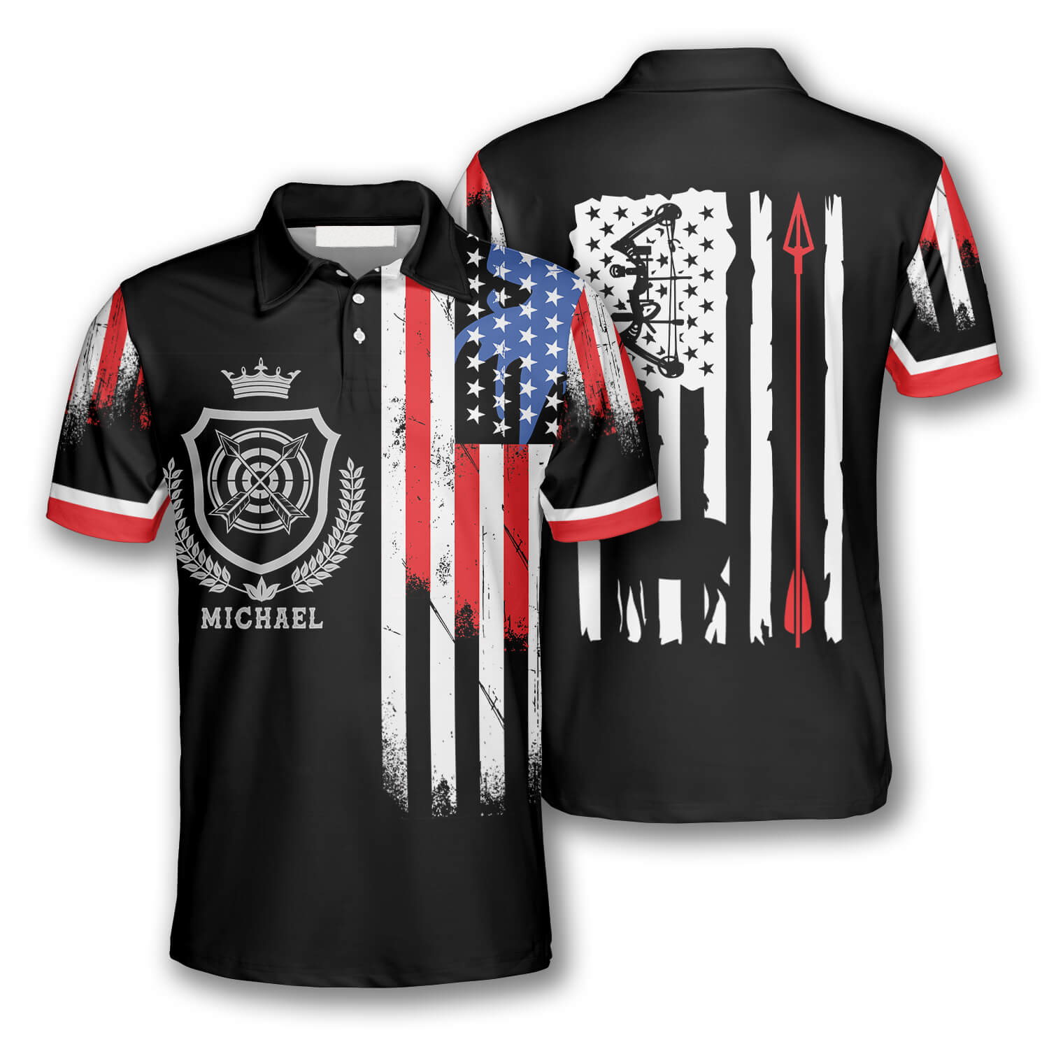 Archery Crown Emblem American Flag Custom Archery Shirts for Men, Gift for Archery Lover AO0021