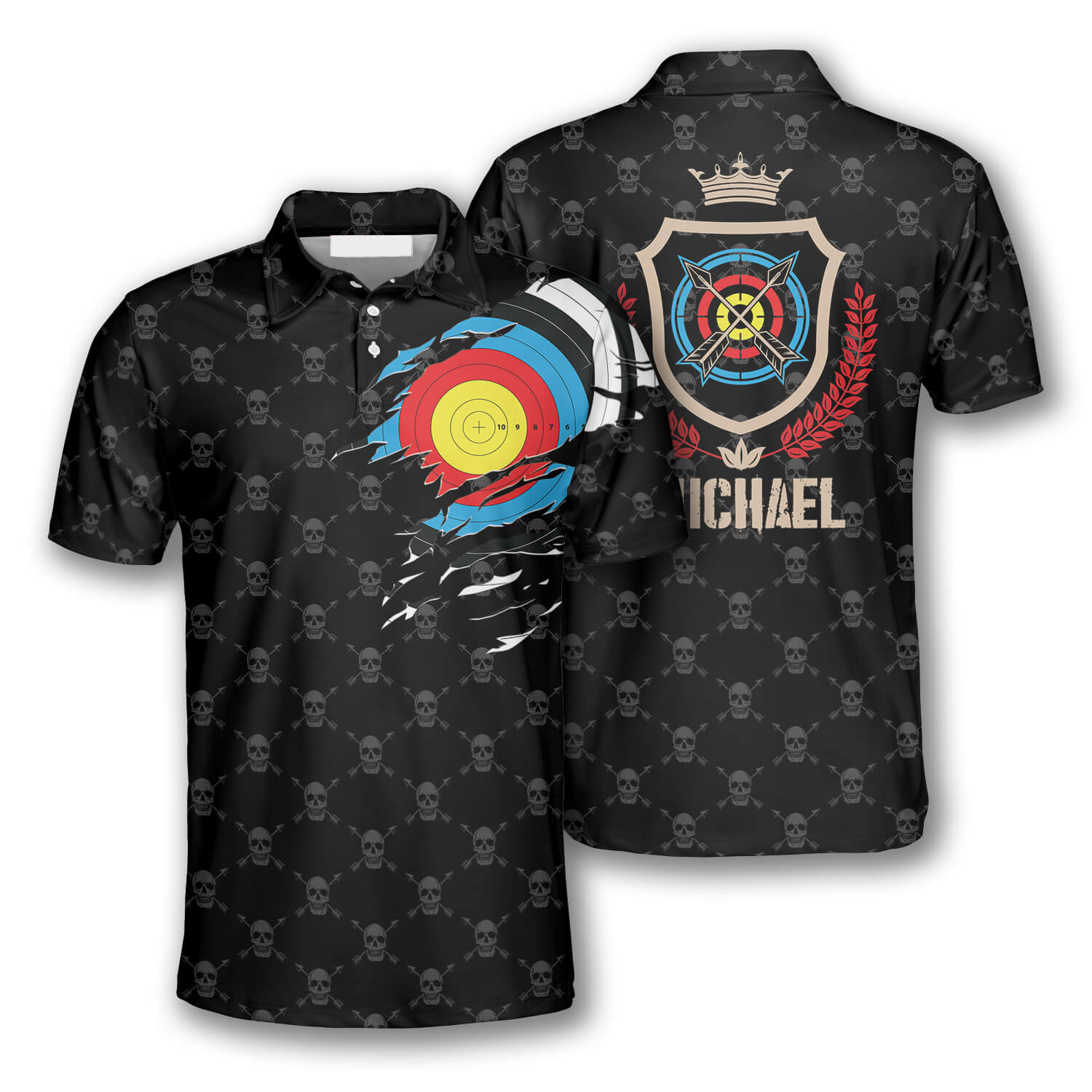 Archery Skull Pattern Crown Emblem Custom Archery Polo Shirts for Men, Uniform Archery Shirt AO0040