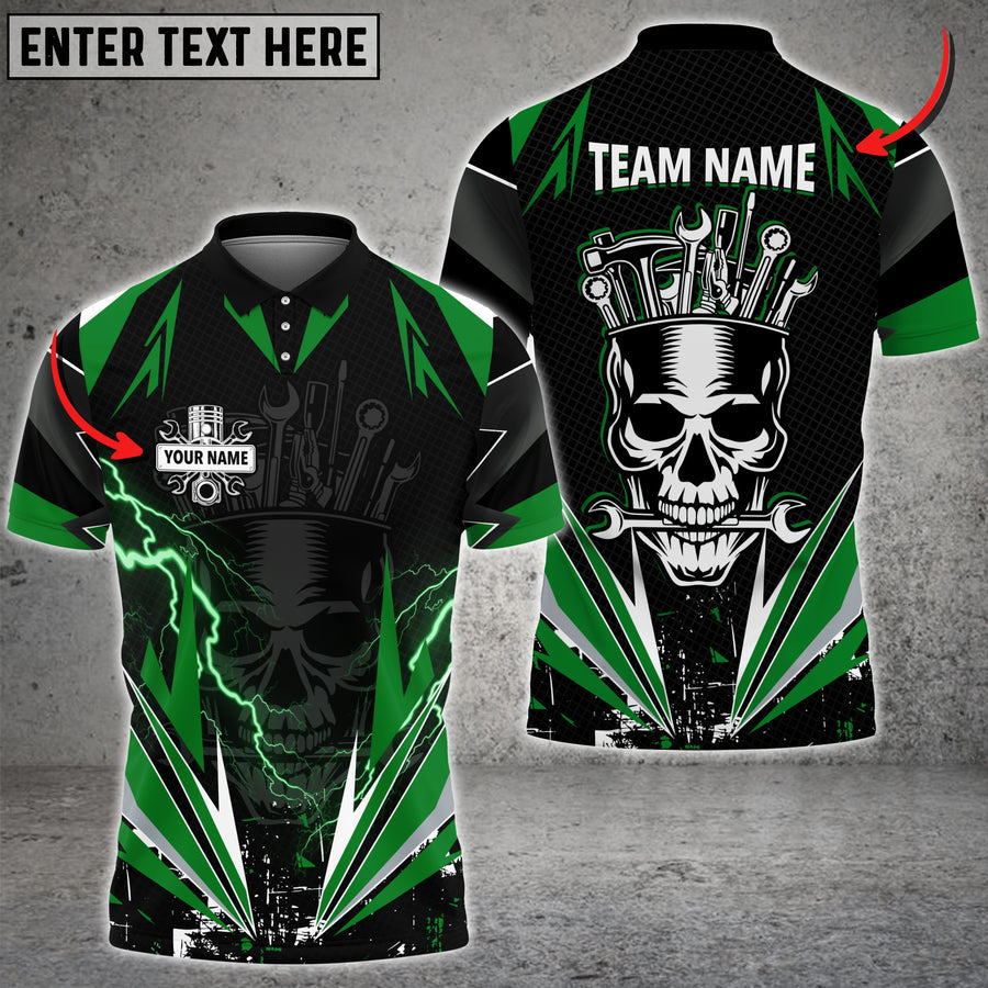 Auto Mechanic Tools Thunder Skull Custom Name Multi Color Printed 3D Polo Shirt TO3473