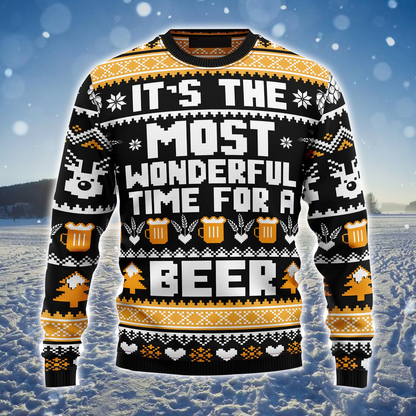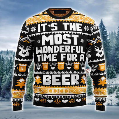Beer Merry Christmas Ugly Christmas Sweater, Wonderful Time For A Beer Ugly Sweater, Perfect Gift For Beer Lovers