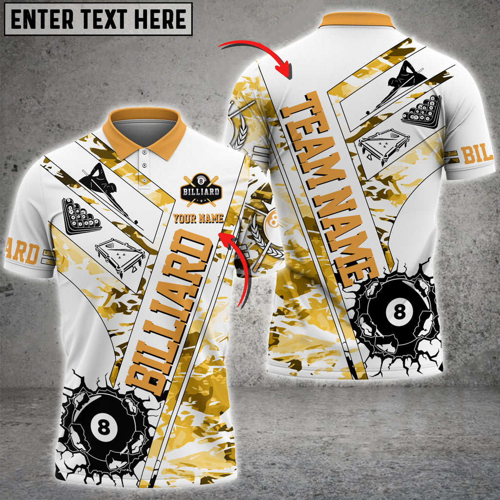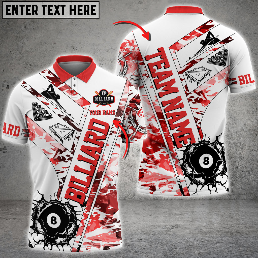 Billiards 8 Ball Crack White Grunge Multi Color Options Personalized Name 3D Polo Shirt, Gift for Billiards Lovers SO1108