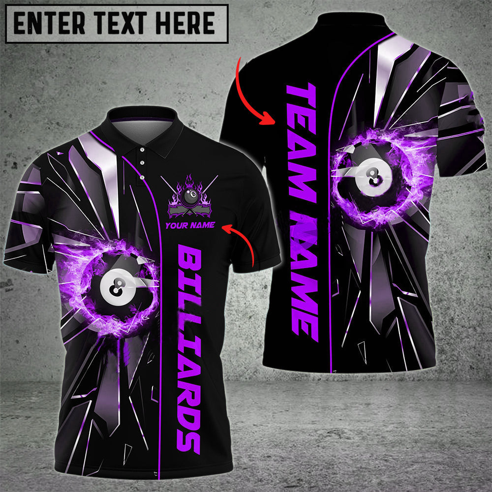 Billiards Ball 8 Fire Broken Glass Personalized Name, Team Name 3D Polo Shirt BIO0040