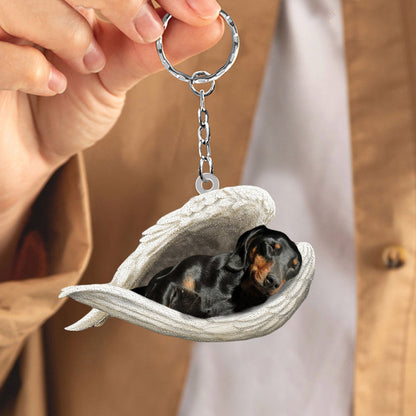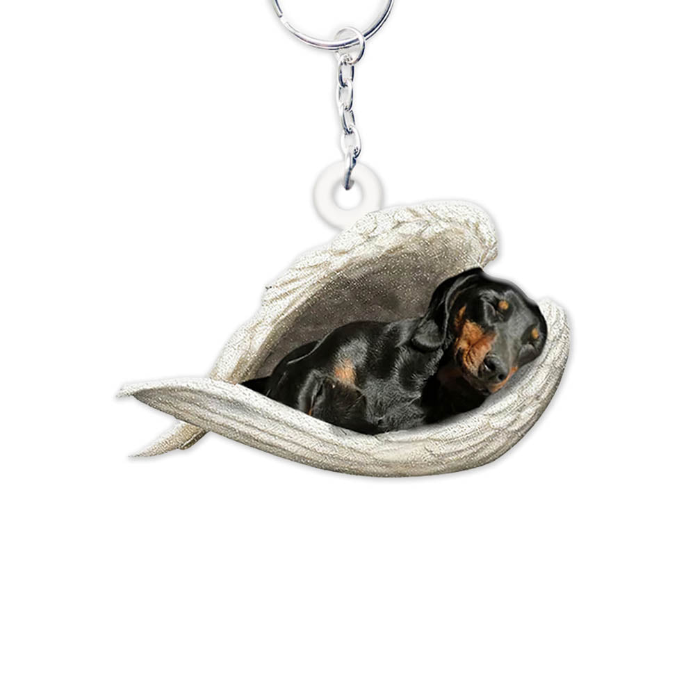 Black And Tan Dachshund Sleeping Angel Acrylic Keychain Dog Sleeping keychain KO0160