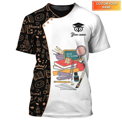 Black and White Pattern Teacher Uniform Teacher Life Custom Tee Shirt, Custom Name Teacher Shirt TO3350