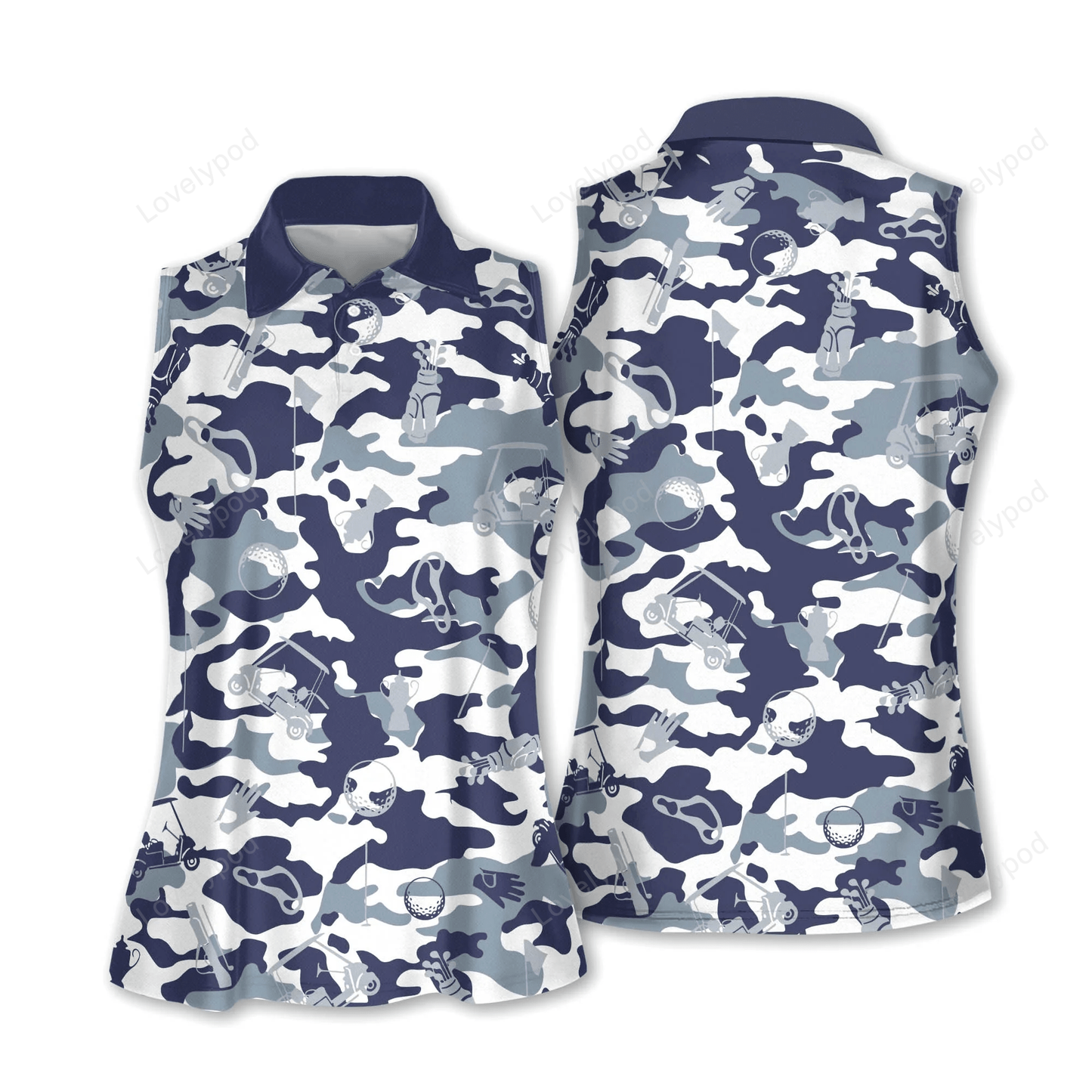 Blue and white camouflage golf set women short sleeve polo shirt, sleeveless polo shirt GY0316