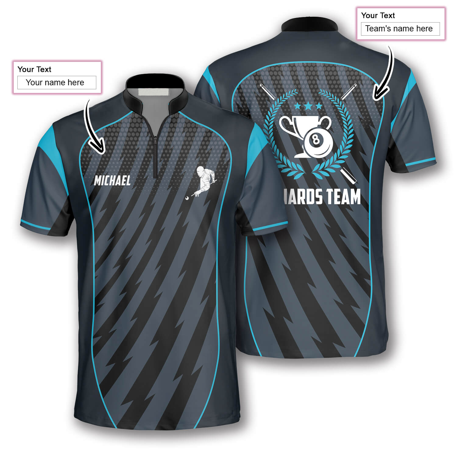 Blue Grey Sports Style Custom Billiard Jerseys for Men, Uniform for Team Billiard SO0754