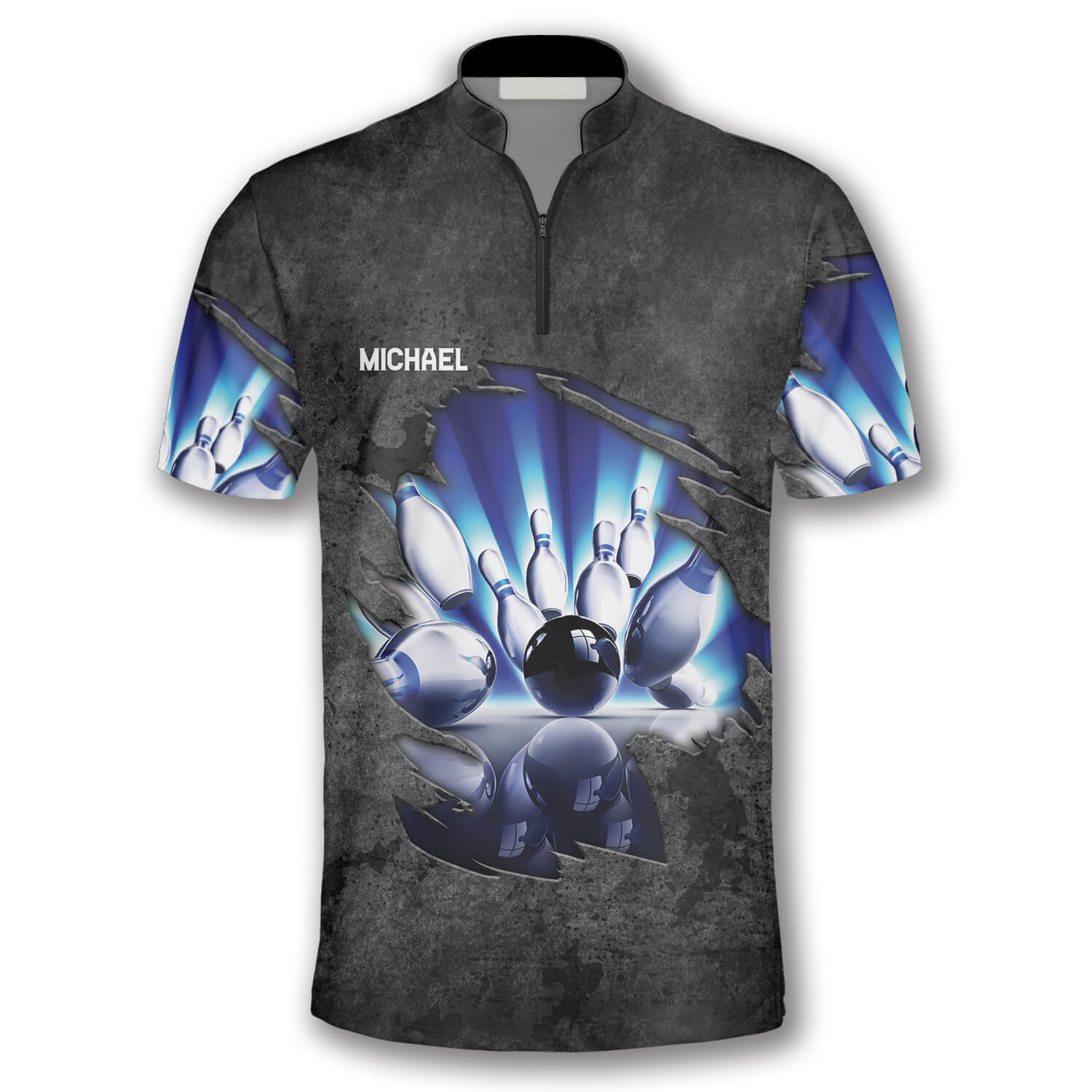 Blue Pins Grey Grunge Pattern Custom Bowling Jerseys for Men, Personalized Bowling 3D Shirt SO1369