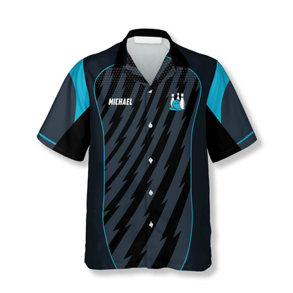 Blue Sports Style Trophy Emblem Custom Bowling Hawaiian Shirt, Uniform Team Bowling Shirt HO0057