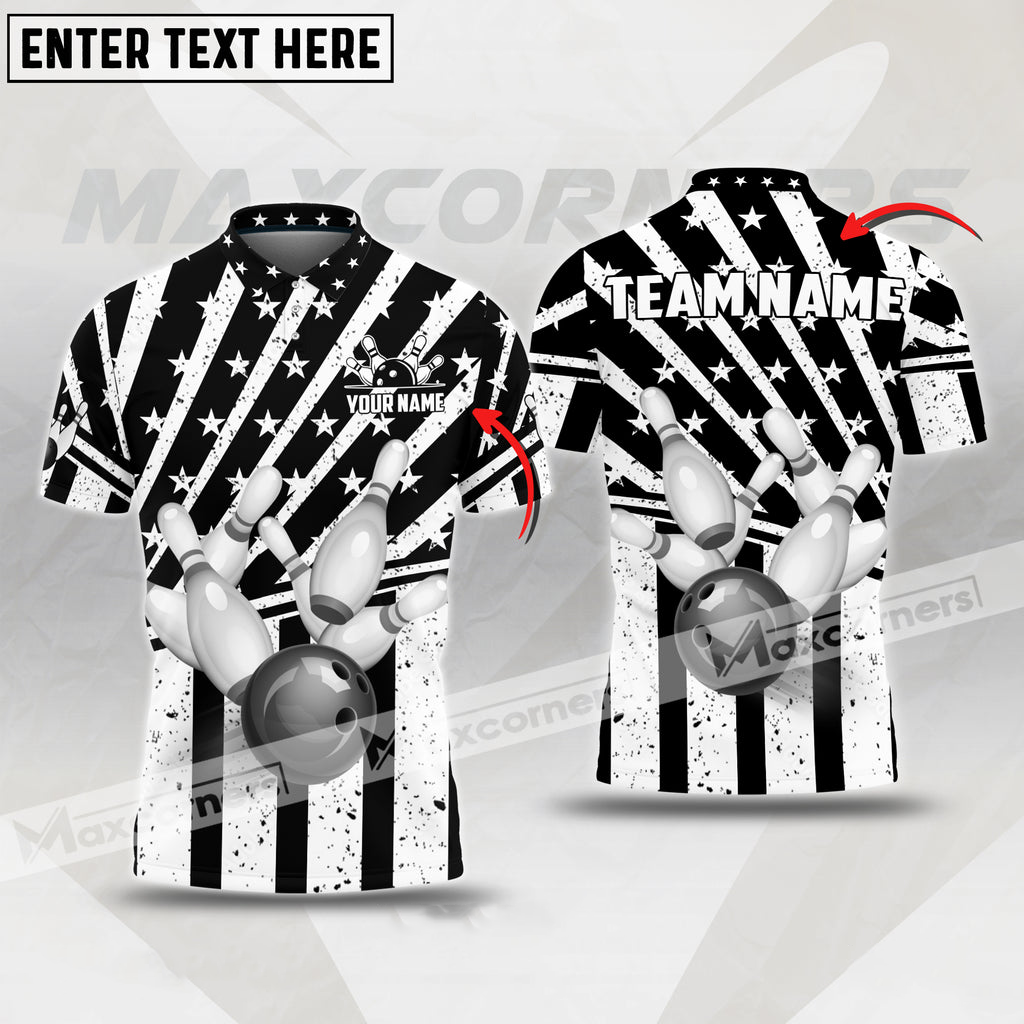 Bowling Ball And Pins American Flag Customized Name Team Name 3D Polo Shirt, Flag Bowling Shirt BO0401