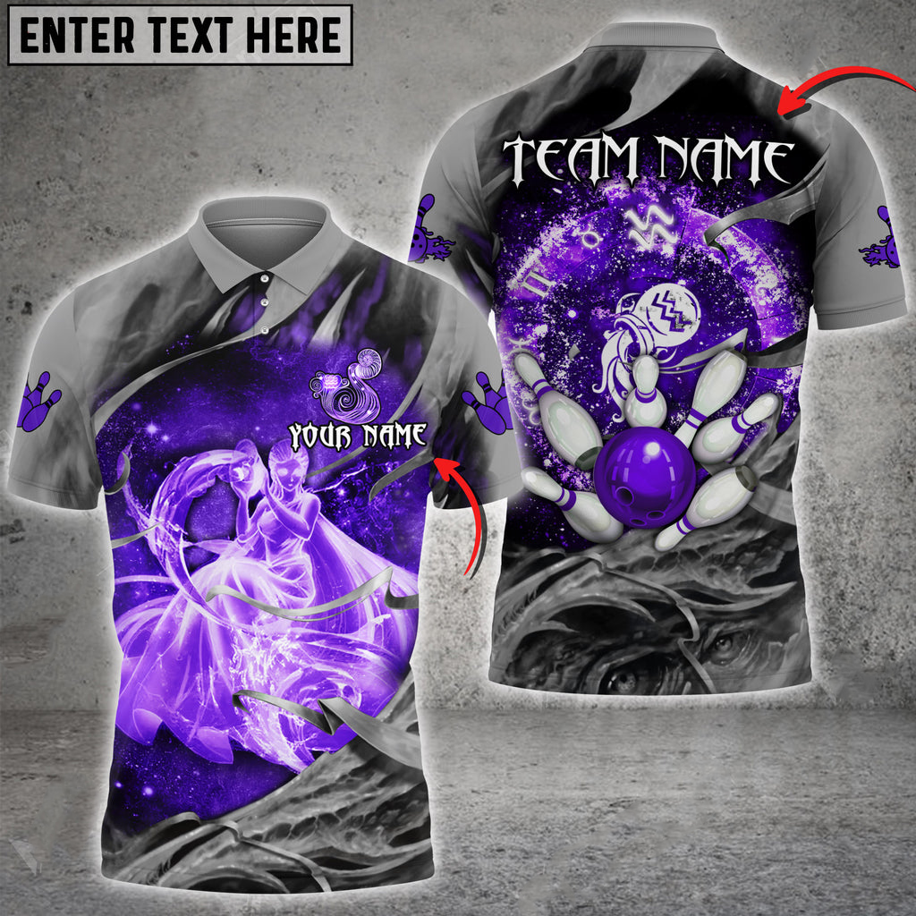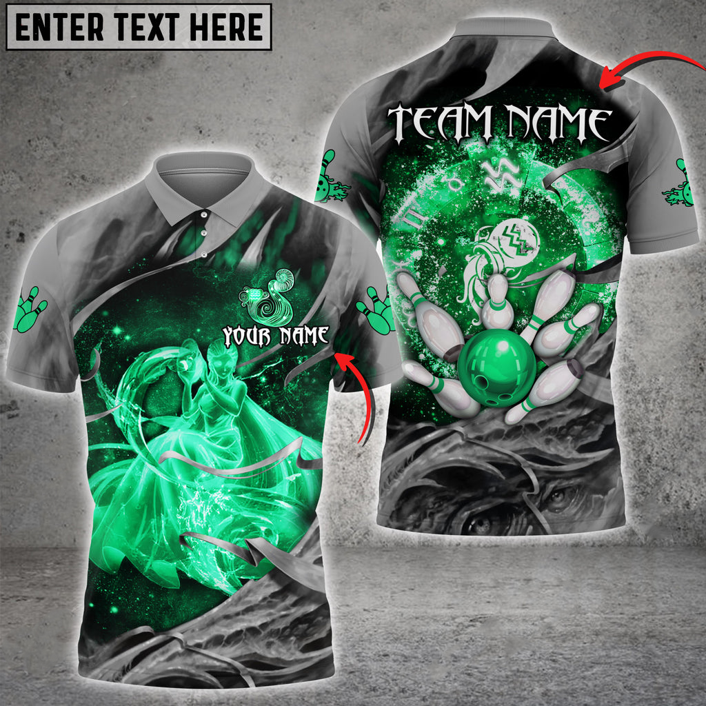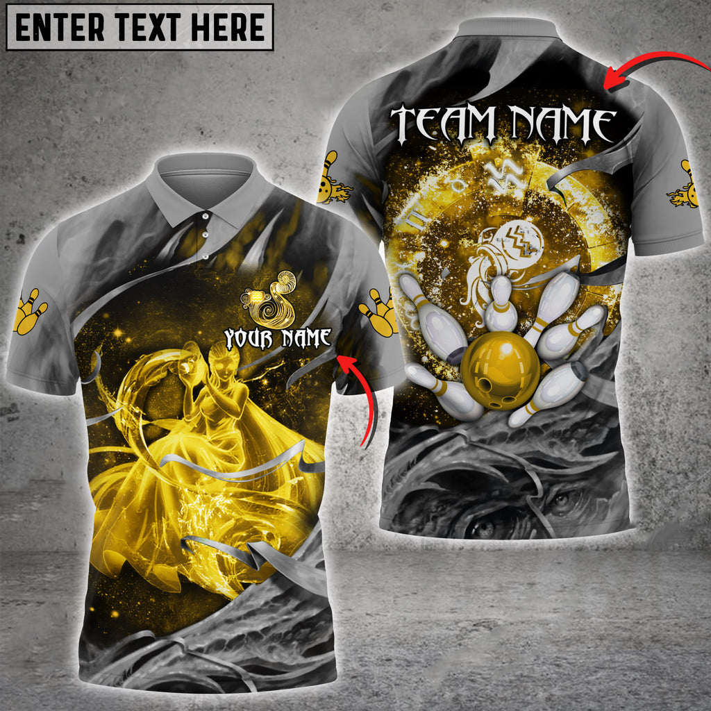 Bowling Ball And Pins Aquarius Symbol Multicolor Option Customized Name 3D Polo Shirt BO0442