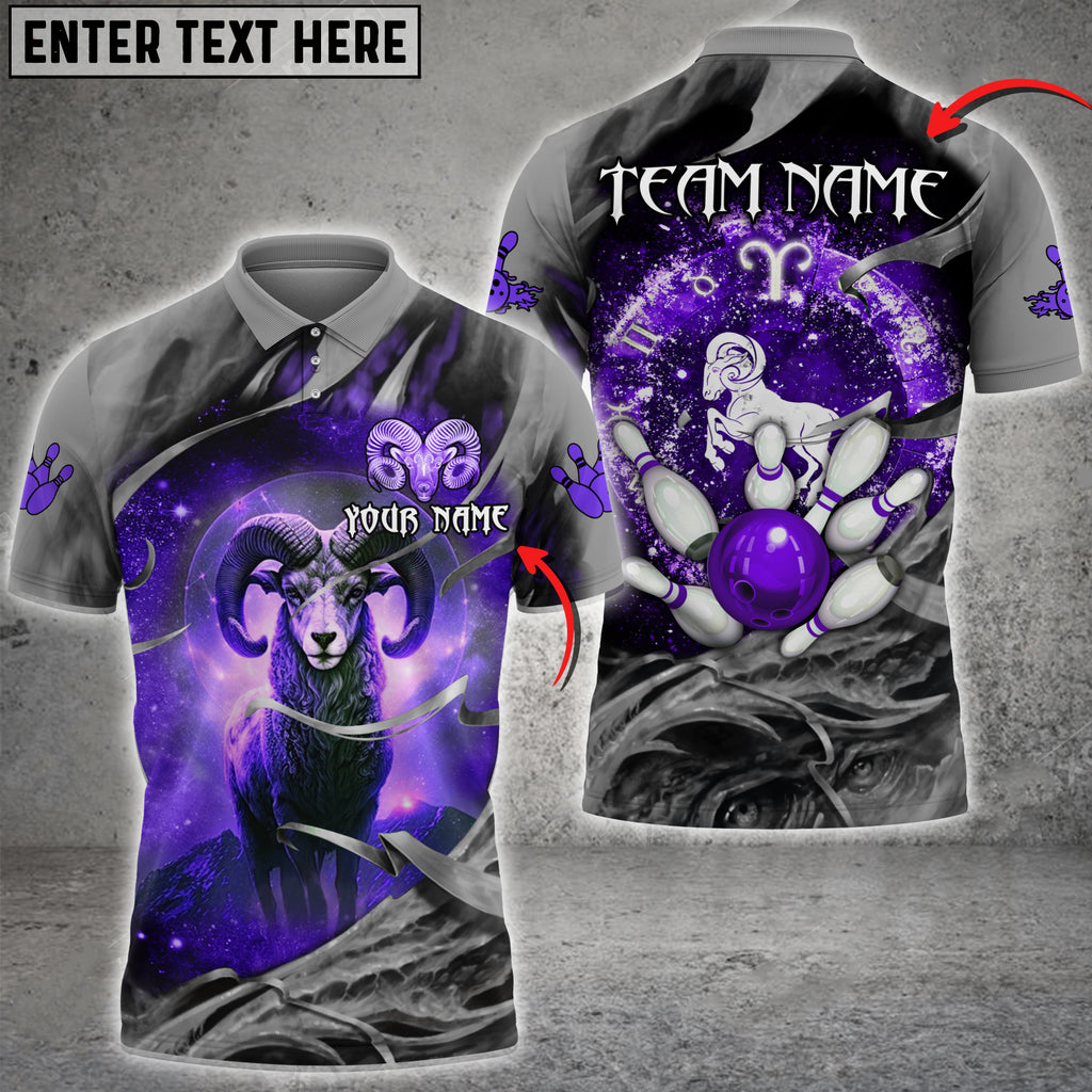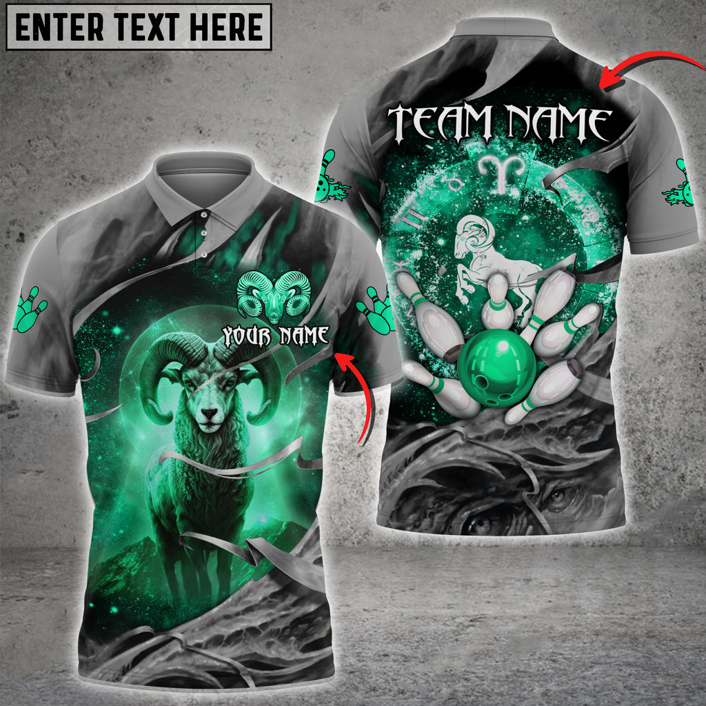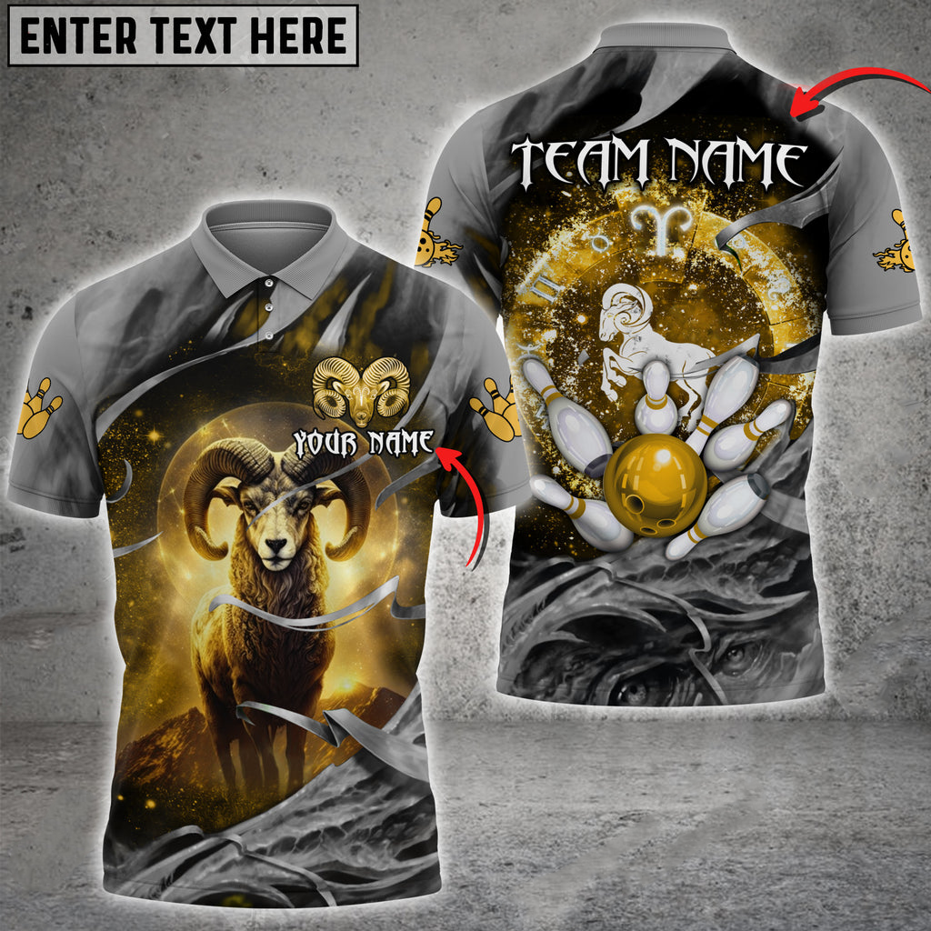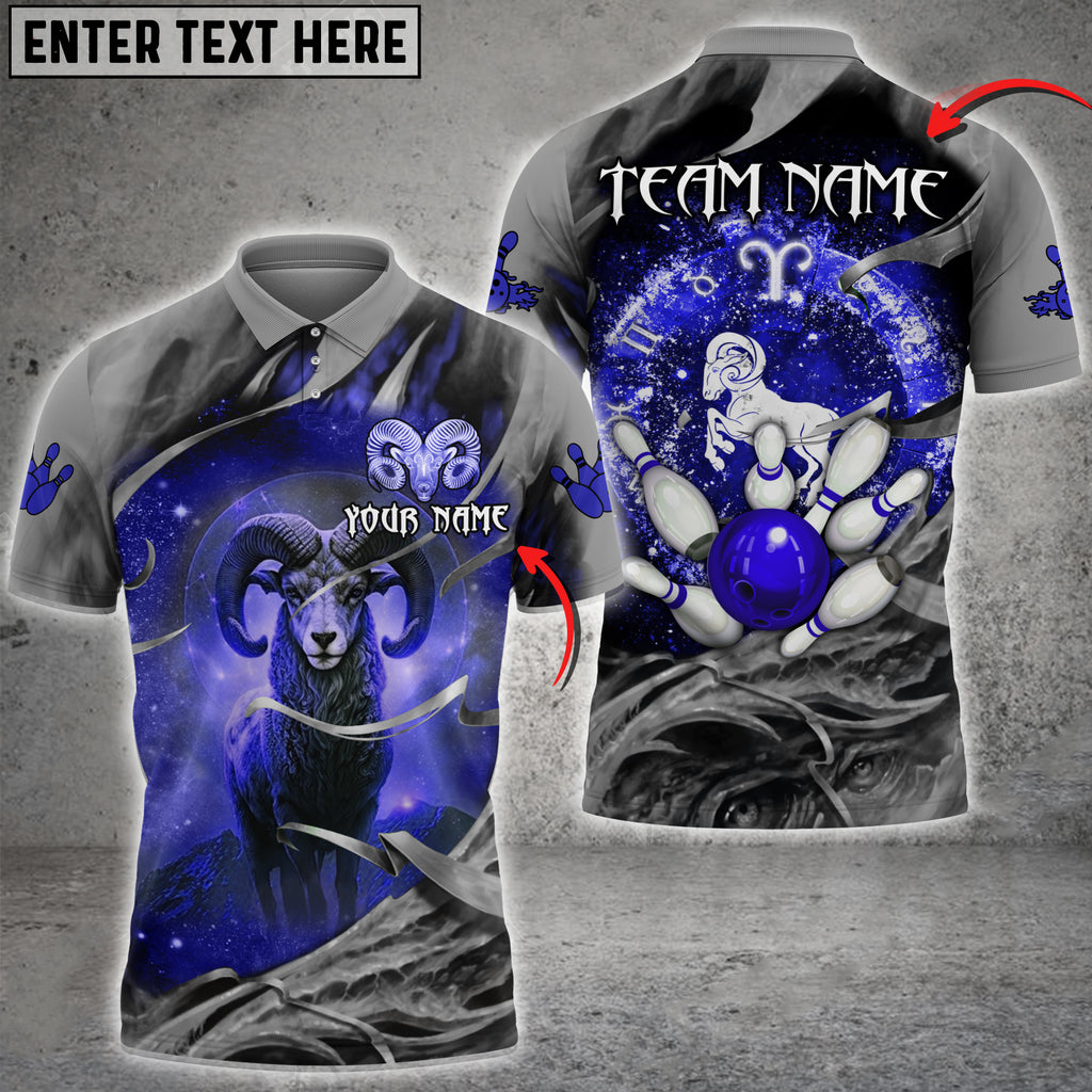 Bowling Ball And Pins Aries Symbol Multicolor Option Customized Name 3D Polo Shirt BO0451