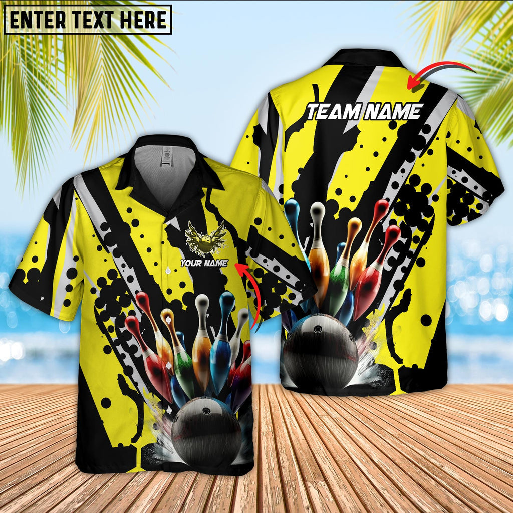 Bowling Ball And Pins Eagle Wings Multicolor Option Customized Name Hawaiian Shirt HO5662