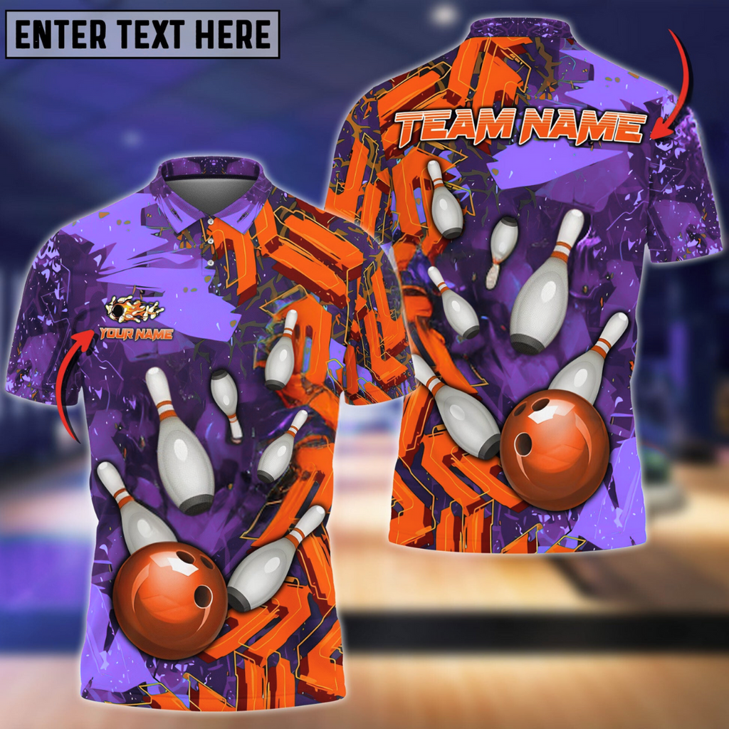 Bowling Ball & Pins Falling Road Abstract Grunge Multicolor Customized Name 3D Polo Shirt BO0389