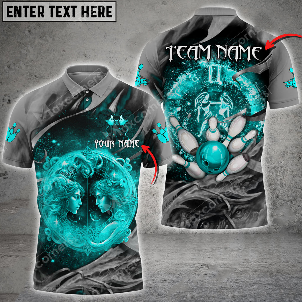 Bowling Ball And Pins Gemini Symbol Multicolor Option Customized Name 3D Polo Shirt BO0450