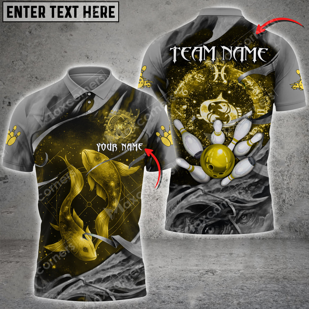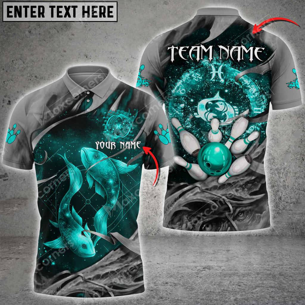 Bowling Ball And Pins Pisces Symbol Multicolor Option Customized Name 3D Polo Shirt BO0443
