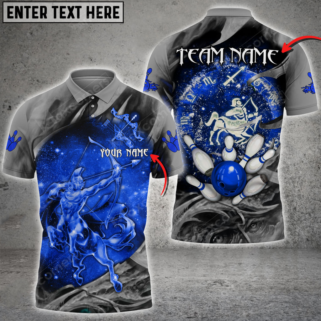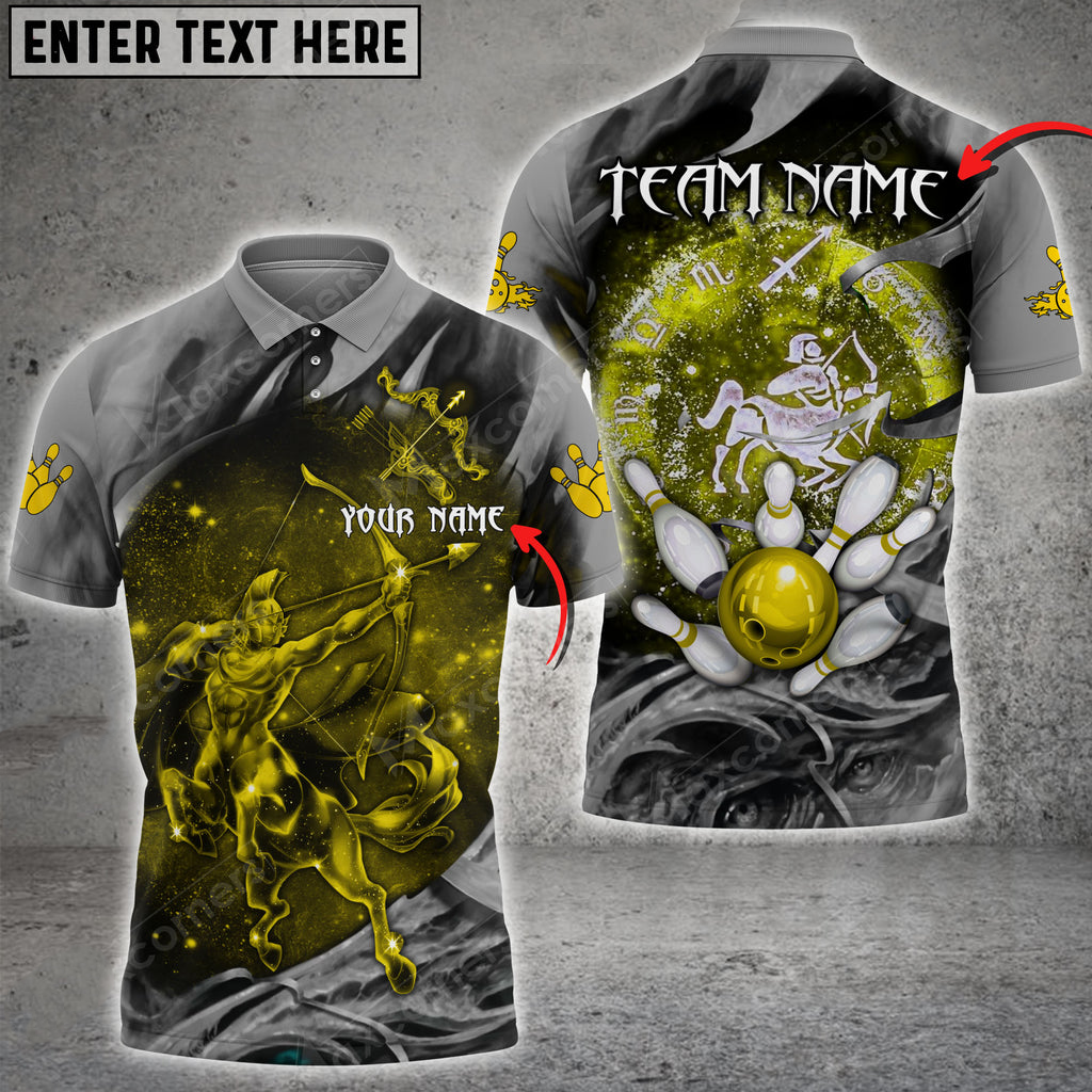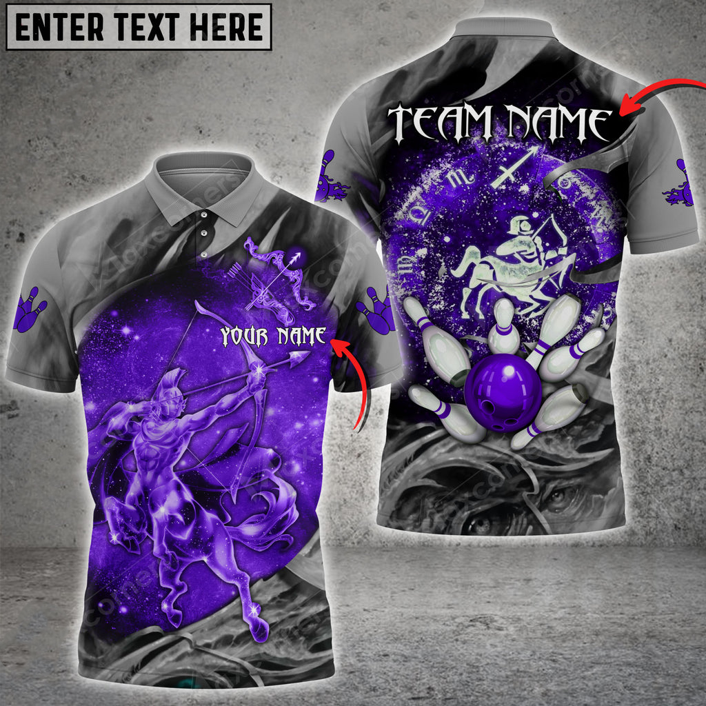 Bowling Ball And Pins Sagittarius Symbol Multicolor Option Customized Name 3D Polo Shirt BO0444