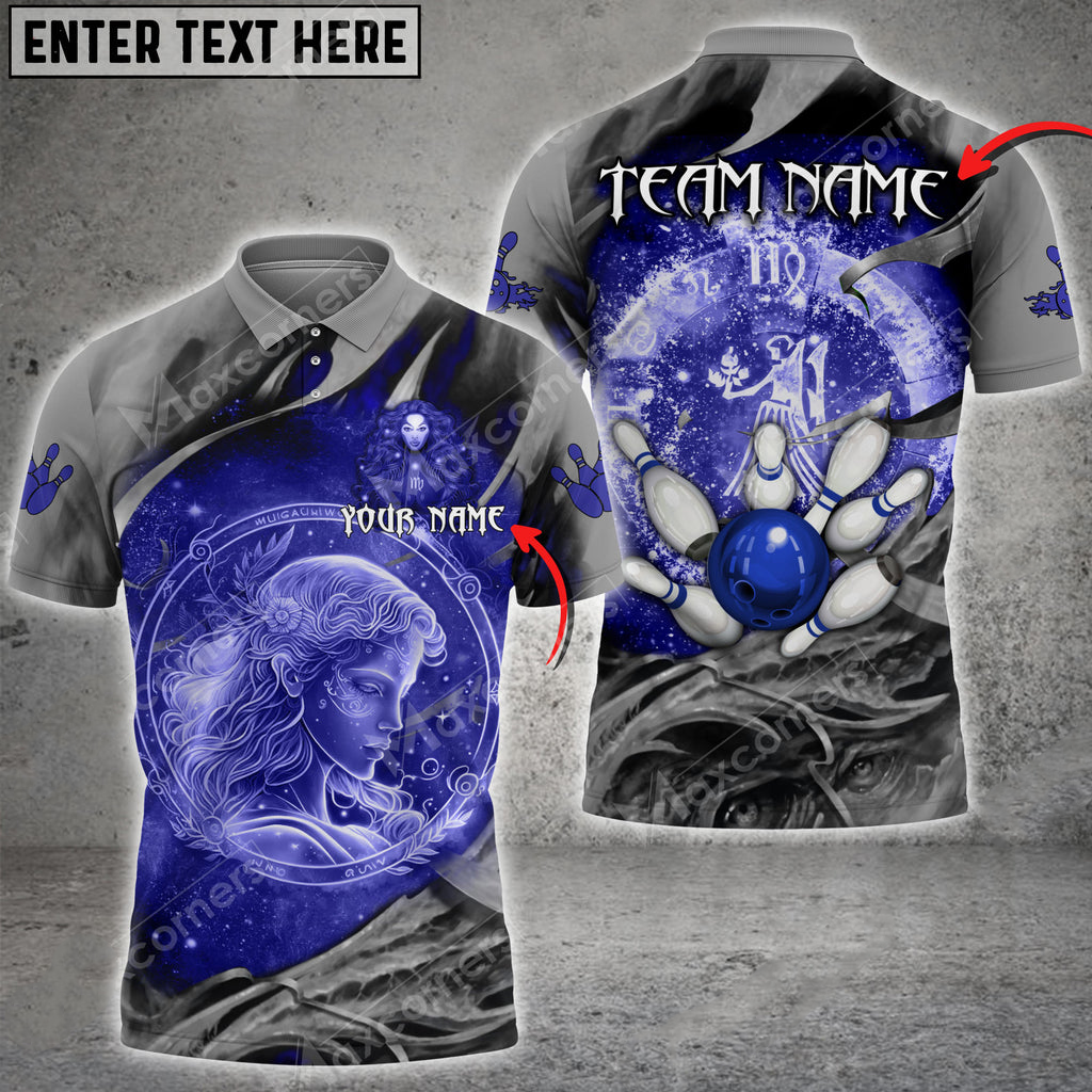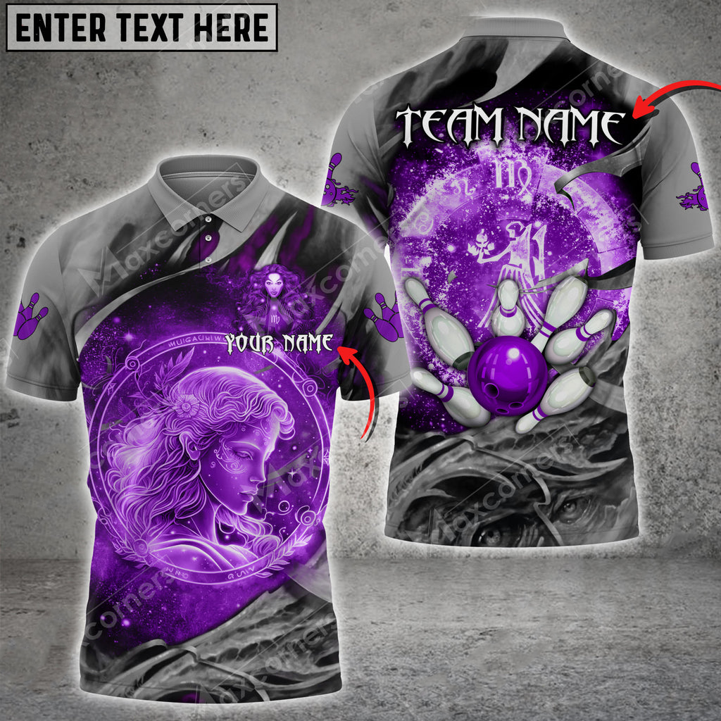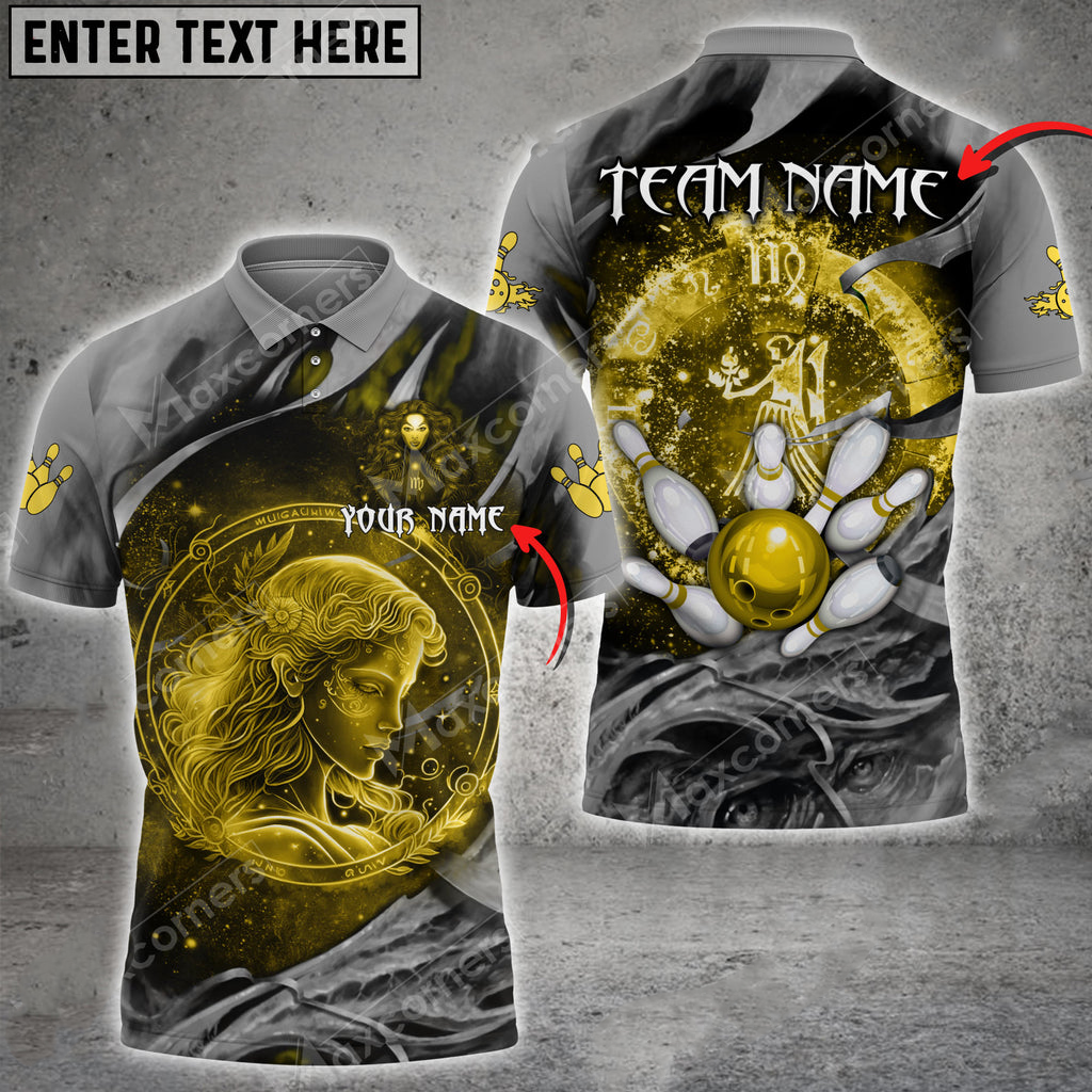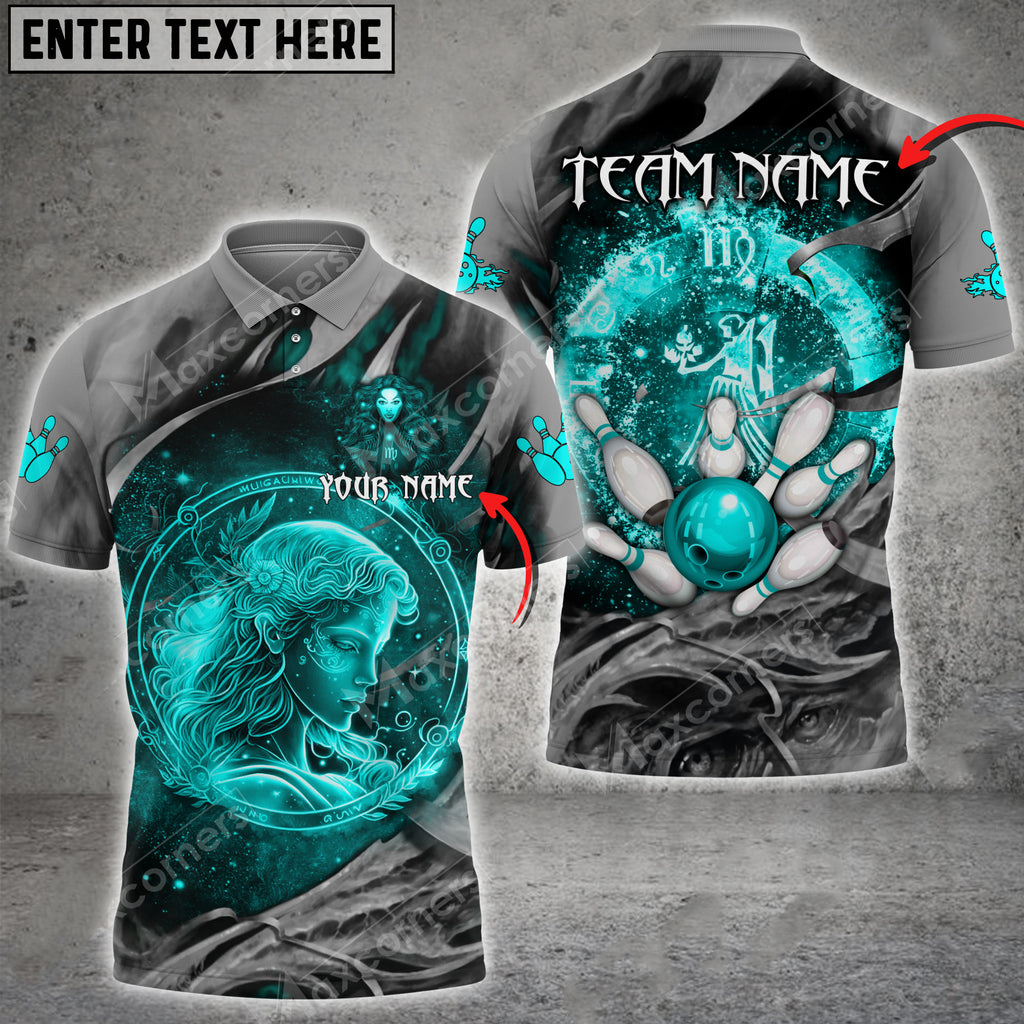 Bowling Ball And Pins Virgo Symbol Multicolor Option Customized Name 3D Polo Shirt BO0447