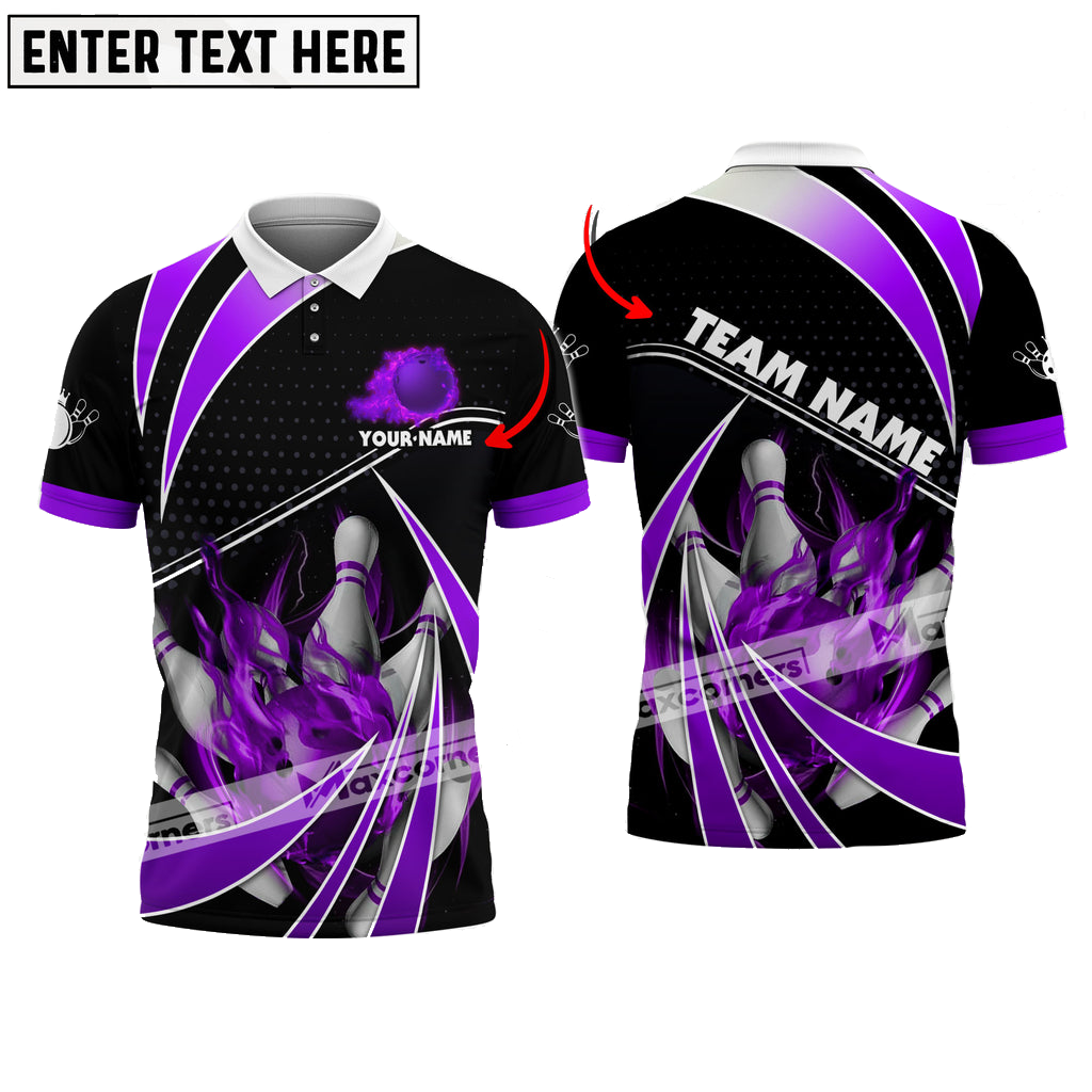 Bowling Ball & Pins Fire Light Sport Jersey Multicolor Option Customized Name, Team Name 3D Polo Shirt BO0405