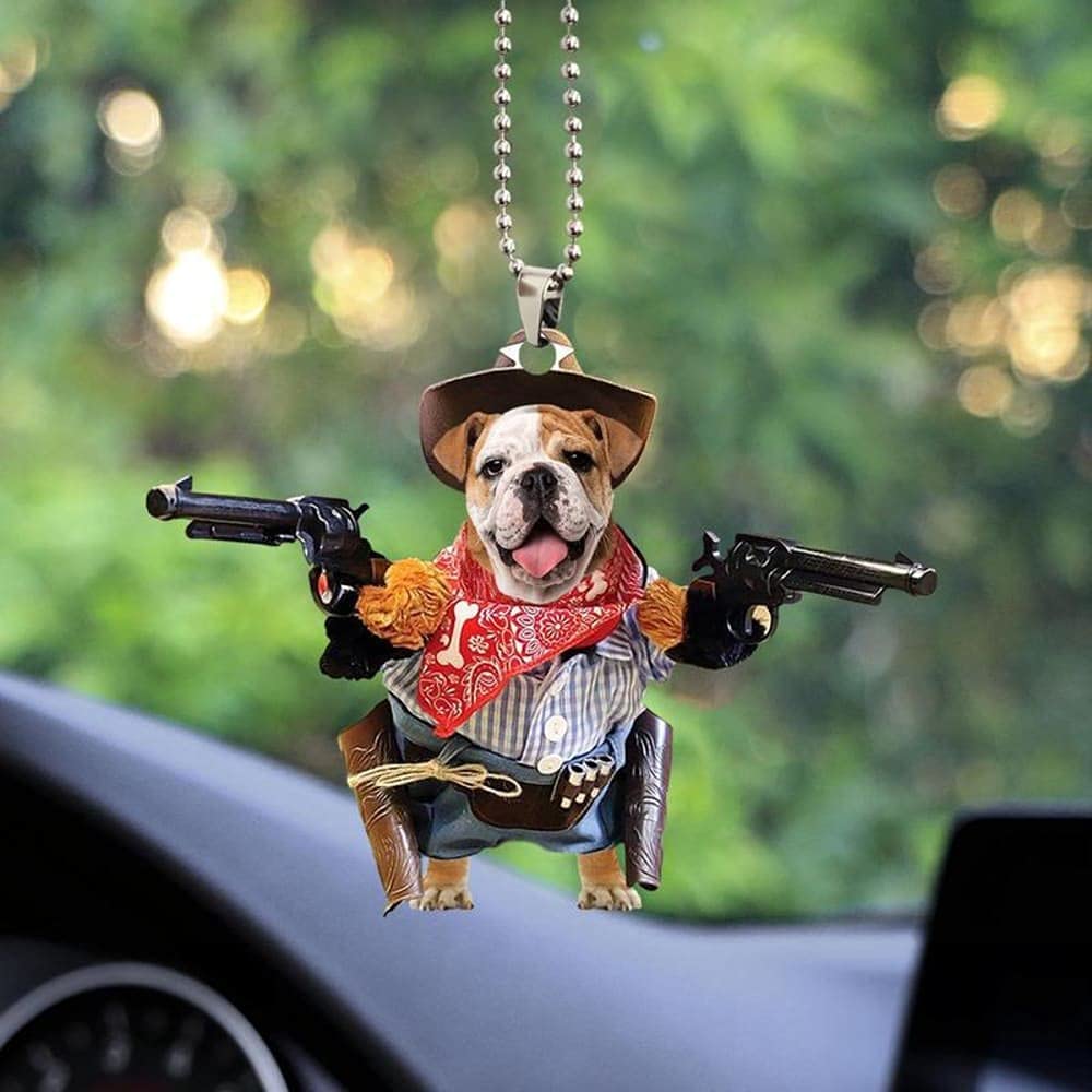 Bulldog Cowboy Car Hanging Ornament Dog Ornament Dog Lover Gift OO0668
