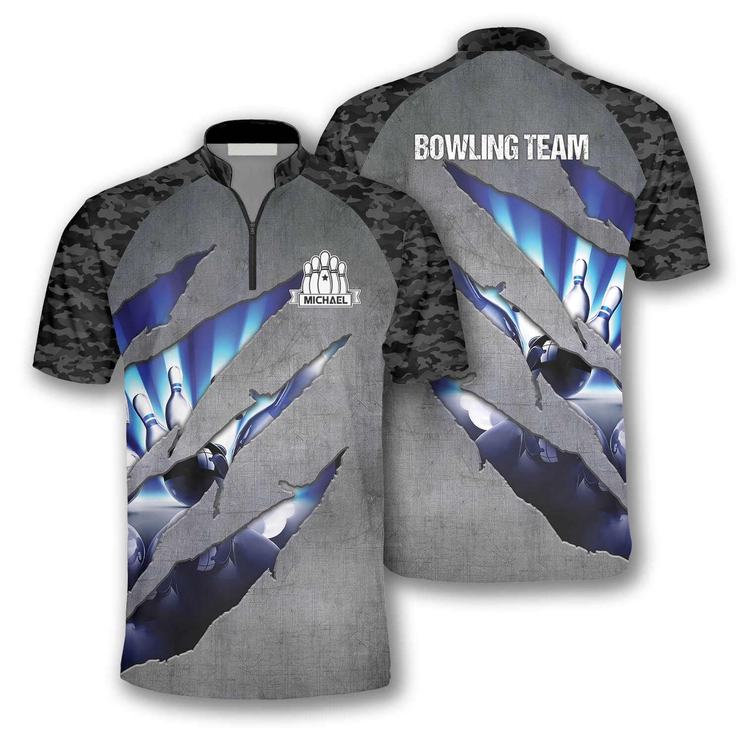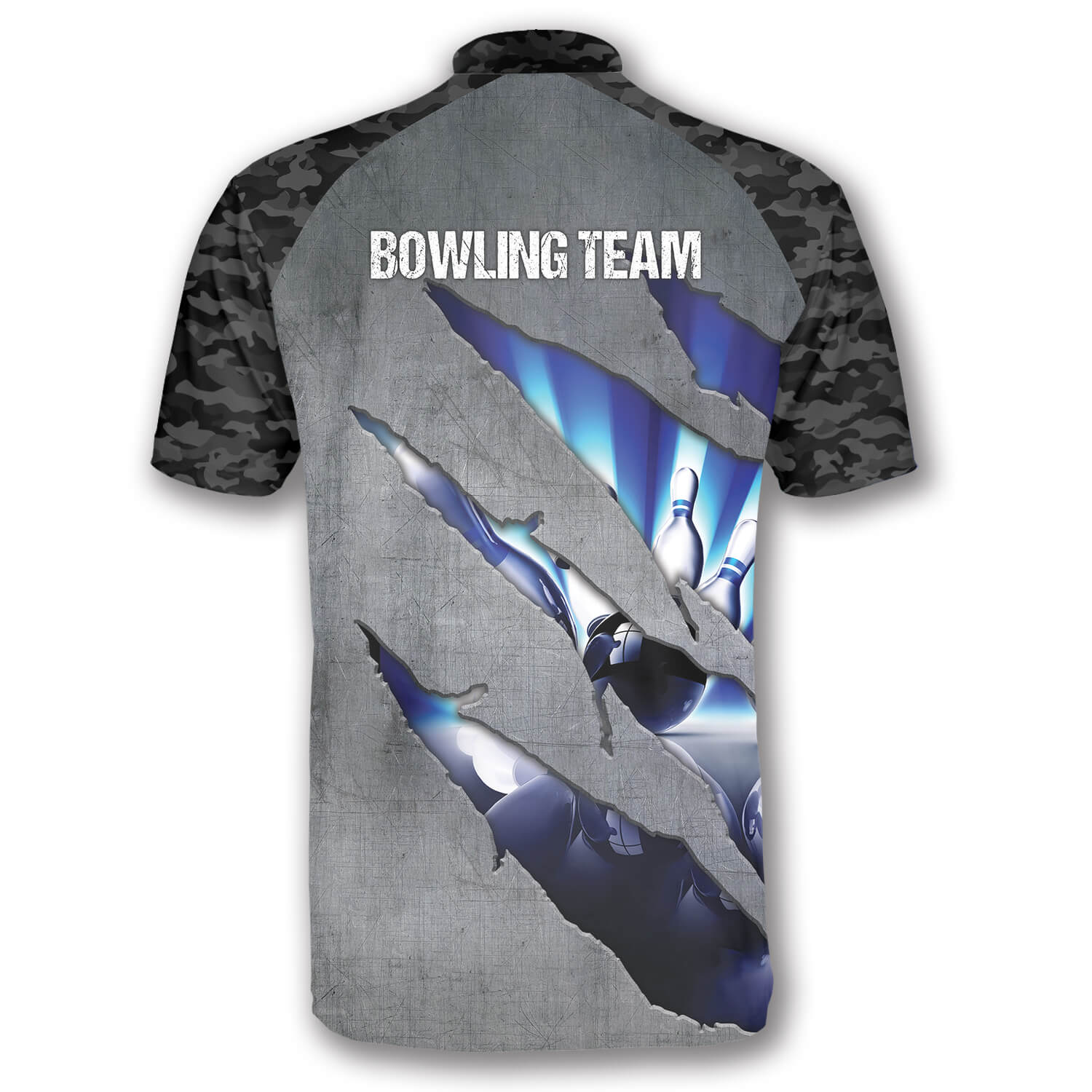 Camo Tiger Scratch Custom Bowling Jerseys for Men, Personalized Name Bowling Shirt, Camo Bowling Gift SO0634