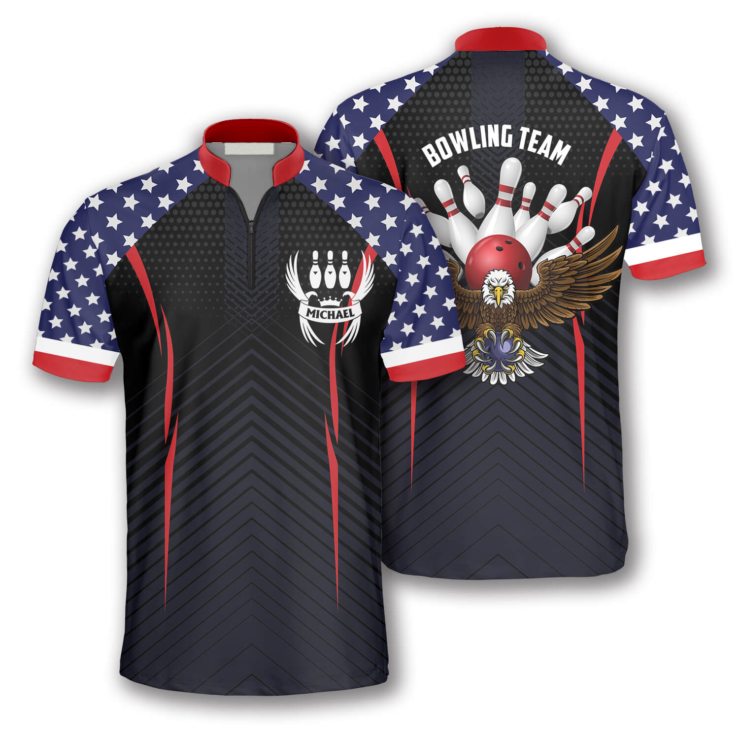 Camouflage Eagle Flag Custom Bowling Jerseys for Men, 3D All Over Print Bowling Shirt, Eagle Flag Shirt SO0535