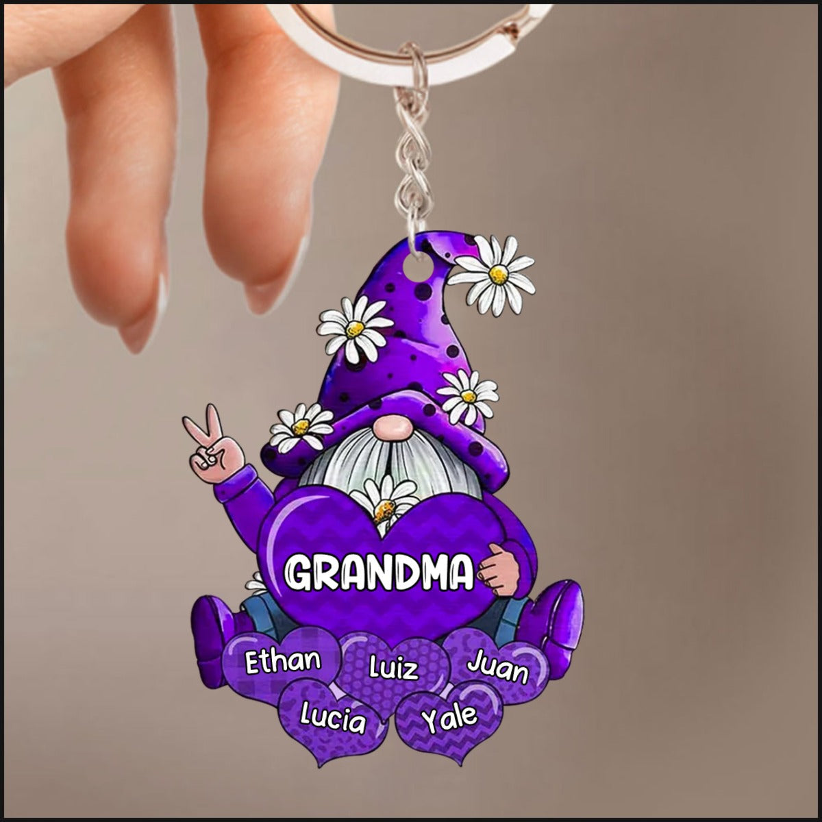 Colorful Grandma Mom Gnome Love Sweet Heart Keychain Custom Keychain For Mother Grandma Keychain KO0199