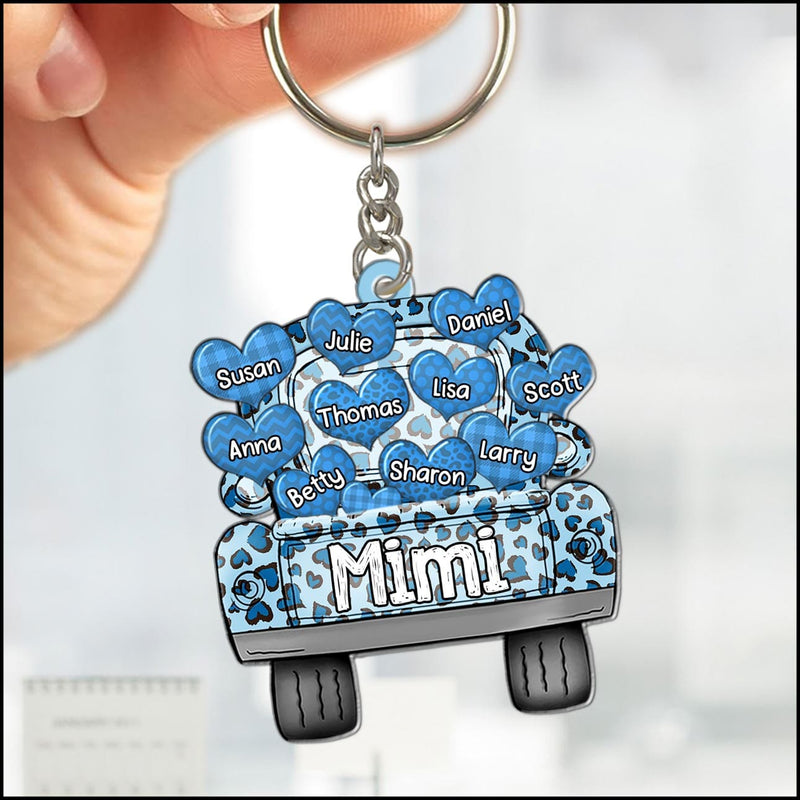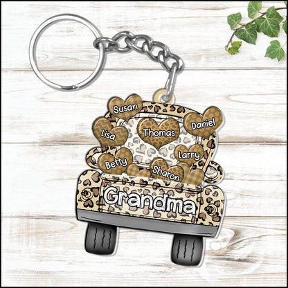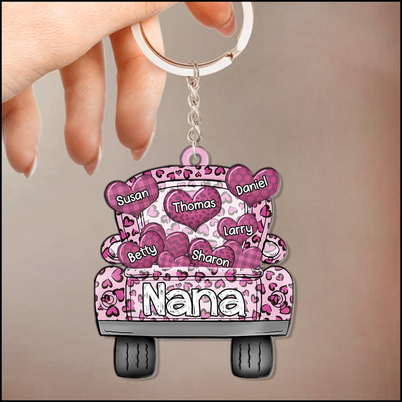 Colorful Leopard Truck Grandma Mom Little Heart Kids, Perfect Valentine's Day Personalized Keychain KO0295